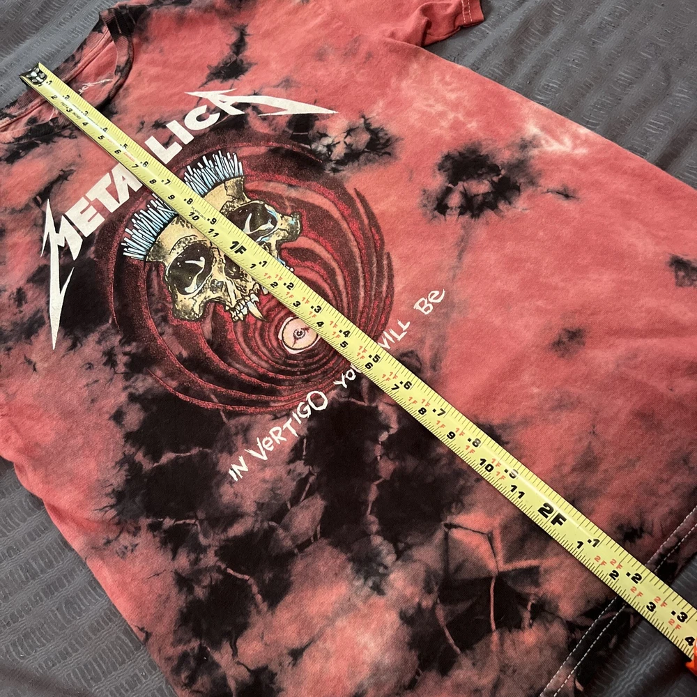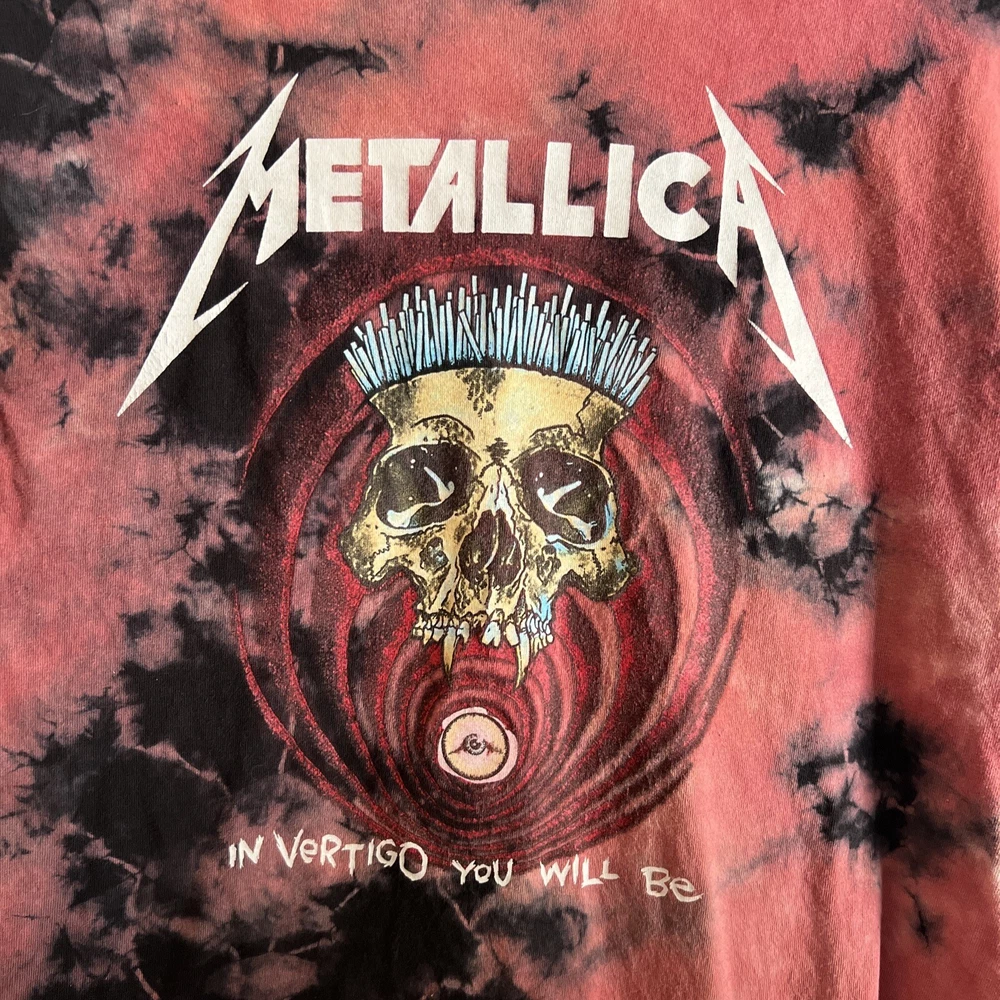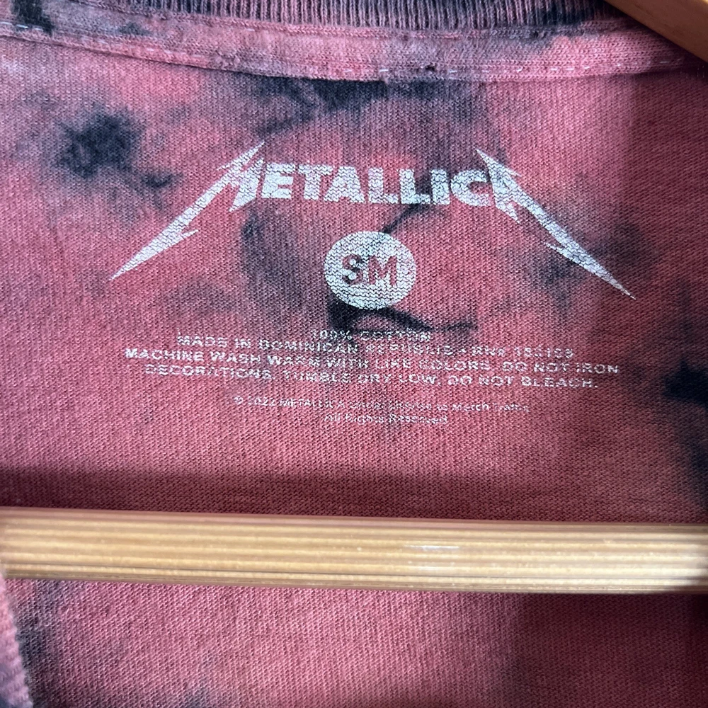 Show off your love for Metallica with this colorful and bold graphic t-shirt. Featuring the iconic "In Your Face" logo in a vibrant red tie-dye pattern, this shirt is perfect for any music lover. The short-sleeve crew neck design makes it a versatile addition to any wardrobe, and it's machine washable for easy care. Made from 100% cotton, this regular fit t-shirt is comfortable and durable. The shirt is available in size small, and it's suitable for all seasons. Whether you're heading to a concert or just running errands, this Metallica t-shirt is sure to turn heads.