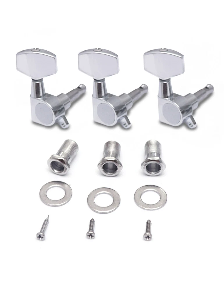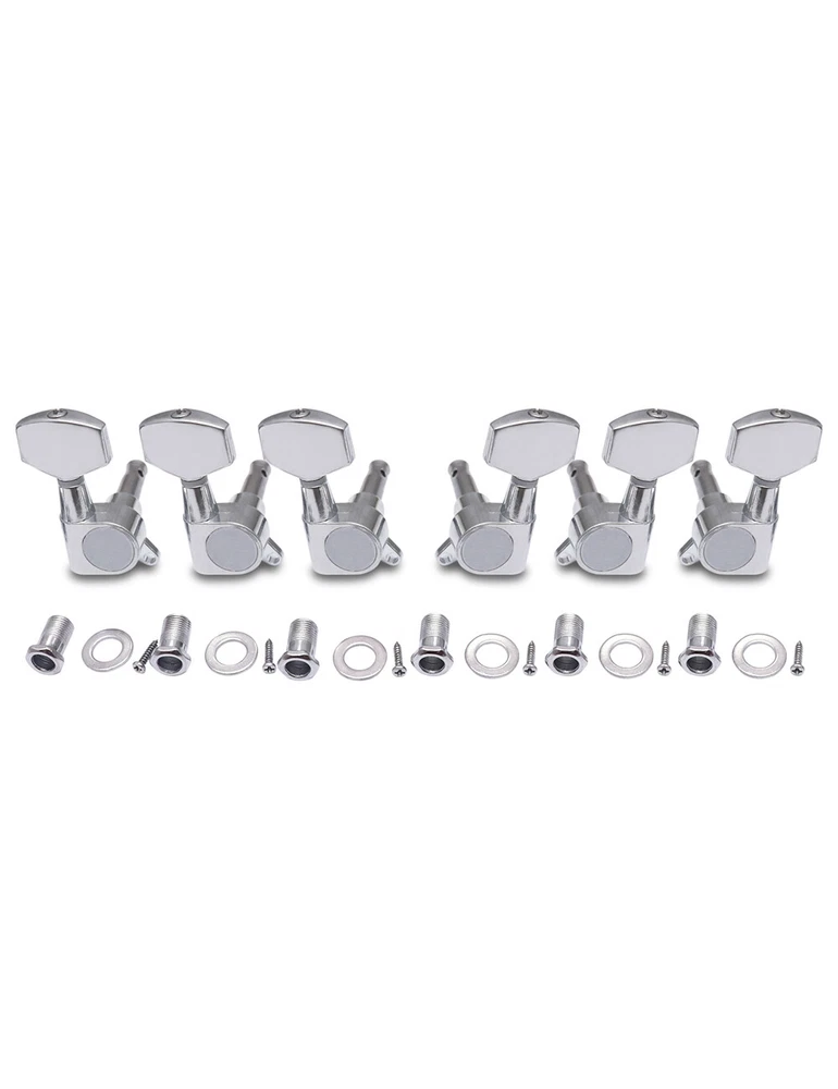 Product description Color: Chrome Material: Zinc alloy Gear Ratio:1:14 Tunning peg hole Diameter: Φ6mm Ferrule hole diameter: Φ10mm Electric Guitar Die-cast Tuning Machines with 45° screw hole Please check the dimension carefully before place order. Package Include 1 x Set Tuning Pegs(3R3L) 6 x Ferrules 6 x Screws 6 x Washers Metallor Parts is a branch of Sunsmile Group, which has had over 20 years of experience in the musical instrument field. We are the leading company in China that can supply a full range of guitar parts, such as hardware, pickups and pickguards etc. Our precise production equipment and experienced staff assure you of the finest quality parts. Cooperating with guitar manufactures, our parts are widely used on famous guitars. Musicians, repairers, luthiers and factories deserve Metallor's quality parts and professional service.