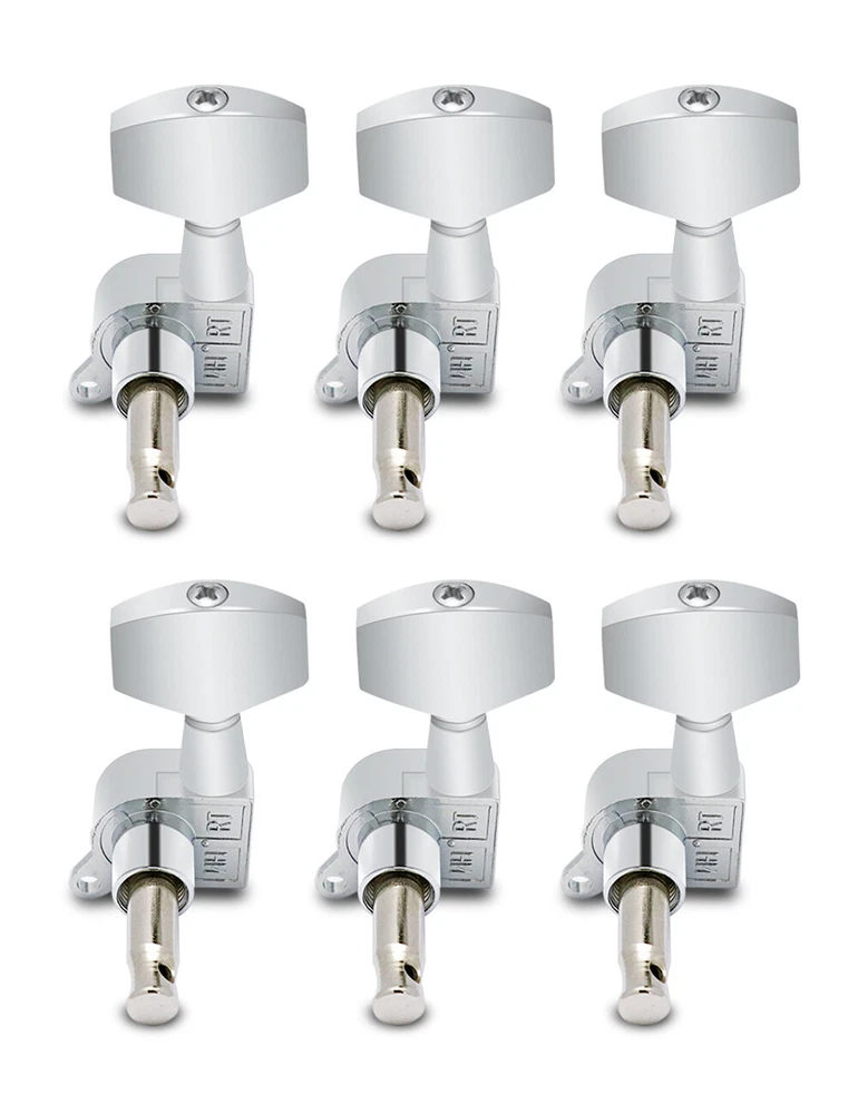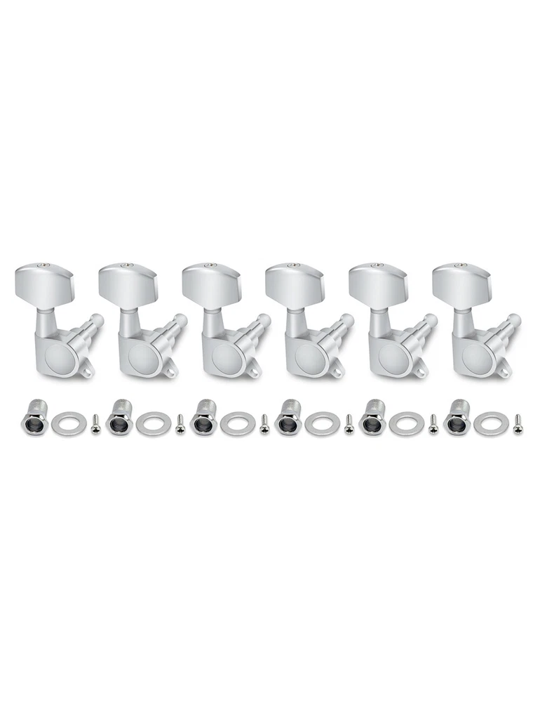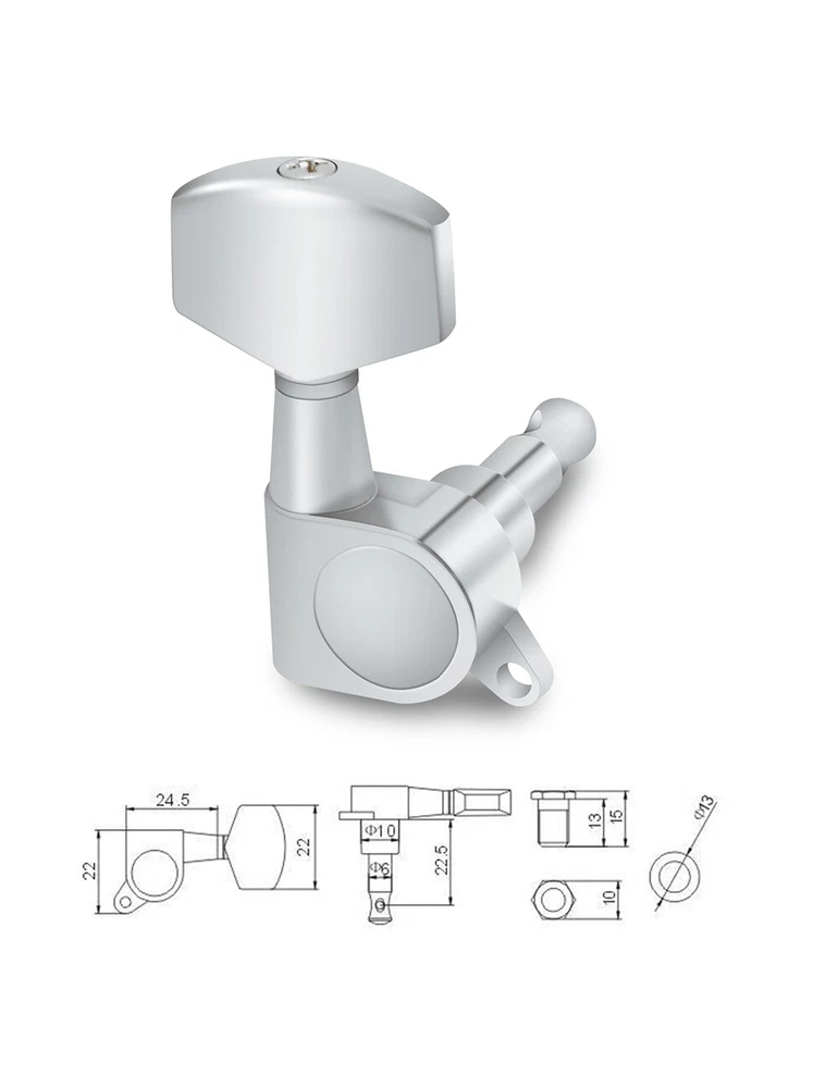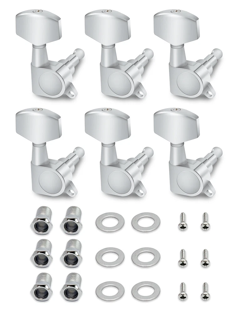 Product description Color: Chrome Material: Zinc Alloy Gear Ratio: 1:14 Tunning peg hole Diameter: Φ6mm Ferrule hole diameter: Φ10mm Electric Guitar Die-cast Tuning Machines with 45° screw hole, Fit for Strat Tele or similar style Guitar. Please check the dimension carefully before place order. Package Include 6 x Right Tuning pegs 6 x Ferrules 6 x Washers 6 x Screws Metallor Parts is a branch of Sunsmile Group, which has had over 20 years of experience in the musical instrument field. We are the leading company in China that can supply a full range of guitar parts, such as hardware, pickups and pickguards etc. Our precise production equipment and experienced staff assure you of the finest quality parts. Cooperating with guitar manufactures, our parts are widely used on famous guitars. Musicians, repairers, luthiers and factories deserve Metallor's quality parts and professional service.