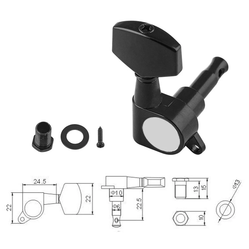 Product description Color: Black Material: Zinc alloy Gear material: Copper Gear Ratio: 1:14 Tunning peg hole Diameter: Φ6mm Ferrule hole diameter: Φ10mm Electric Guitar Die-cast Tuning Machines with 45° screw hole, Please check the dimension carefully before place order. Package Include 1 x Set Tuning Pegs(3R3L) 6 x Ferrules 6 x Threaded bushings 6 x Screws Metallor Parts is a branch of Sunsmile Group, which has had over 20 years of experience in the musical instrument field. We are the leading company in China that can supply a full range of guitar parts, such as hardware, pickups and pickguards etc. Our precise production equipment and experienced staff assure you of the finest quality parts. Cooperating with guitar manufactures, our parts are widely used on famous guitars. Musicians, repairers, luthiers and factories deserve Metallor's quality parts and professional service.