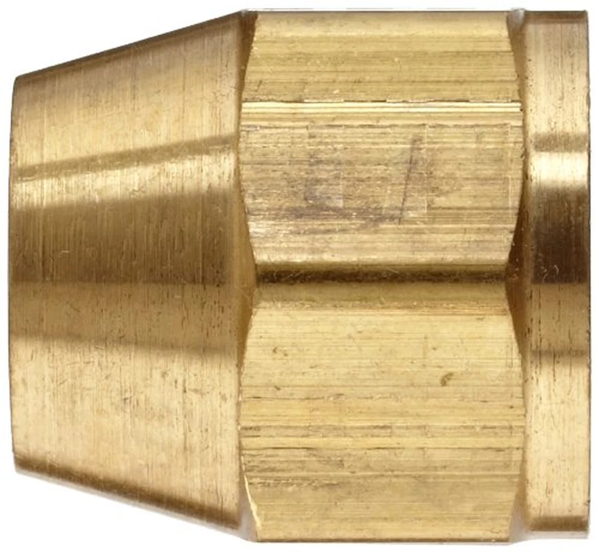 Short flare nut for connecting to a tube or fitting Connects to copper, brass, aluminum, or steel tubing Brass for corrosion resistance, ductility at high temperatures, and low magnetic permeability Operating temperature range of -65 to +250 degrees F Resists mechanical pullout for a more secure connection These fittings contain lead and are not allowed by federal law to be installed for potable water use in the U.S.A. and its territories. This Anderson Metals short flare nut compression tube fitting is made of brass, connects to a flared tube or fitting, and is suitable for use with fuel and gas systems. It is made of brass for corrosion resistance, ductility at high temperatures, and low magnetic permeability. This fitting connects to a flared tube or fitting and can be used with copper, brass, aluminum, or steel tubing. It is part of an assembly that resists mechanical pullout for a more secure connection, and can be assembled and reassembled without affecting the seal. This short flare nut compression tube fitting has an operating temperature range of -65 to +250 degrees F and is suitable for use with fuel and gas systems, plumbing, refrigeration, and vacuum applications. Tube fittings are components used for connecting, branching, terminating, and changing the direction of tubing in pneumatic and hydraulic systems. They are made of brass, stainless steel, PBT (polybutylene terephthalate), and other materials that resist corrosion and wear. Tube fittings have various types of connections, including threaded, welded, barbed, and push-to-connect (also called one-touch). Push-to-connect connections do not require tools or sealants. Tube fittings are used in various applications, including machine tools, airplane and truck controls, and automated production lines, among others. Anderson Metals manufactures brass fittings, valves, and pipe nipples. The company, founded in 1951, is headquartered in Kansas City, MO.
