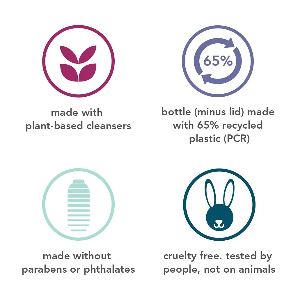Contains (1) 28 ounce bottle of gel liquid body soap. Infused with peony, rose water plus pink sea salt. Biodegradable formula made with plant-based cleansers. Made with no parabens, no phthalates, no bad vibes. Leaves skin feeling moisturized plus smelling scent-sational. Bottle (minus pump) made of 80% recycled plastic (PCR).