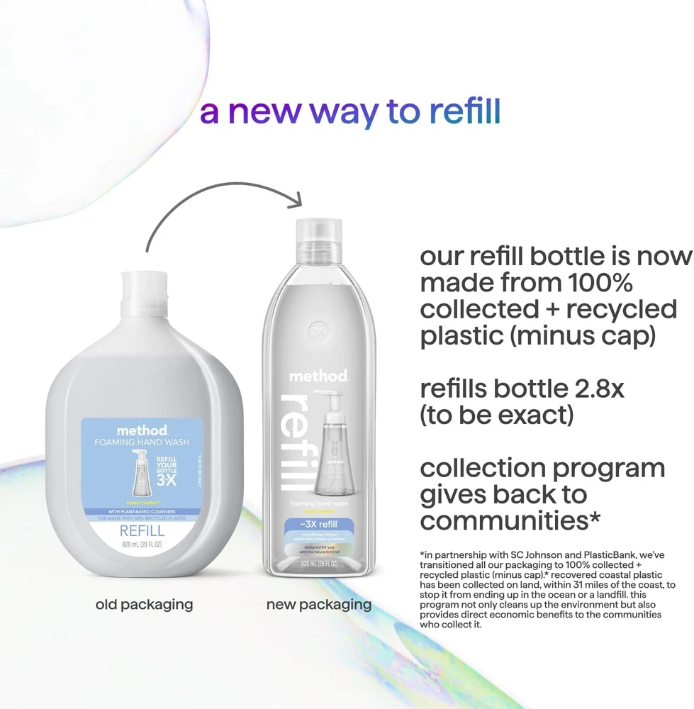 Just tried this refill and it’s amazing! The sweet water scent is fresh without being overpowering, and the soap lathers perfectly every time. Love that it’s biodegradable and uses plant-based cleansers—feels good knowing it’s eco-friendly without sacrificing quality. The recyclable bottle and reduced plastic waste are big pluses. Works great in my existing dispenser and leaves hands soft. Highly recommend!
