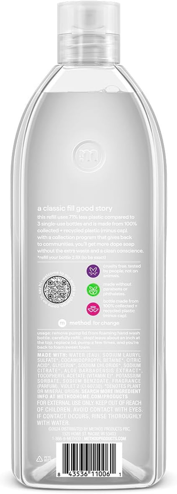 Neighborhood service Foaming Hand Soap, Refill, Sweet Water, Recyclable Bottle, Biodegradable Formula, 28 Oz, (Pack of 1) ENJOY THE FEATURES Contains (1) 28 ounce refill bottle of foaming hand wash. Refills your method foaming hand wash bottle 2.8X (to be super exact). Biodegradable formula made with plant-based cleansers. Made without parabens or phthalates. 35% less plastic than using 3 new bottles. Bottle made with 50% recycled plastic (PCR) and designed to be recycled. Glasses are better half-full. Hand wash, too – or better yet, totally full. And for that, we offer this refill. Our biodegradable formula with plant-based cleansers comes in an adorably chubby tub made with 50% recycled plastic (PCR) and designed to be recycled again. It's a sudsy cycle of goodness. Item model number 843536105845 Item dimensions L x W x H 2.57 x 5 x 7.5 inches Product Dimensions 2.57 x 5 x 7.5 inches; 1.75 Pounds Country of Origin USA Item Weight 28 Ounces Age Range (Description) Adult Department Unisex-Adult Scent Sweet Water Size 28 Fl Oz (Pack of 1) 5.0 inches x 2.57 inches x 7.5 inches. Weight: 28.0 oz PAYMENT We accept all payments via Ebay using Credit Cards , PAYPAL , Apple Pay and many others SHIPPING We are always working hard to ensure your package arrives as soon as possible. Please understand that some factors like weather, high postal traffic, and the performance of shipping companies are outside of our control. We offer free shipping to the lower 48 states and ship within 3-5 business days of payment, usually sooner. We do not accept P.O. Boxes. Please provide a physical address. We do not ship internationally at this time. DELIVERY & RETURN POLICY We do not offer returns unless the item violates eBay policies. Please be aware these polices only make sellers accept returns if the item violates eBay's Buyer Guarantee. If you would like to learn more about this please visit eBay's Help Page. Thank you for your business
