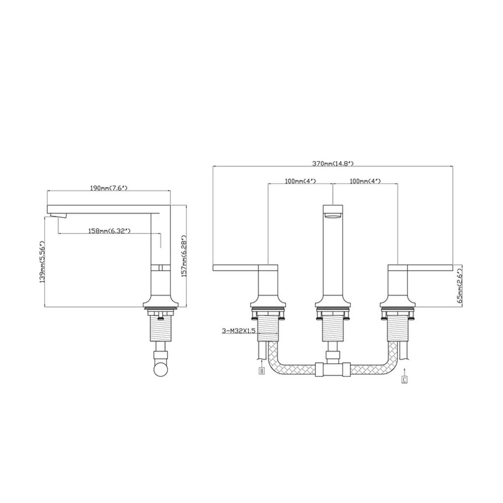 [additional] Included: Spout Valve (2 units) with handles Quick connection tube to connect the spout to the valves Hose for water supply 3/8 compression (2 units) Installation accessories Qty: 1 [/additional] Classic and elegant bathroom faucet with two valves.Design of roundand flat lines that makes it worthy of being inside our Soho family.This faucet includes classic curved edges for an attractive but substantial style that provides an elegant bathroom sensation. The characteristics of graceful style and without complications give this taps an eternal but fashionable presence. Adapted but relaxed. This brilliant collection works perfectly with current lifestyles.The handles make it easy to adjust the water Clear laminar flow provides a beautiful water presentation. Tap handles can be installed at any distance between 8 in. and 16 in. for more customized extended installation. Available in different finishes. Features: Widespread faucet 8 to 16 inch installation Hidden aerator Flat design levers and spout. Ceramic cartridge 3/4 inch Flow rate: 1.2 gpm @ 60 psi / 4.5 Lmin @ 414 kPa Deck thickness: Max 1 inch Hose included for valve and spout connection. 1/2 inch female NPT 12 inch length Available in different finishes. Material: Brass Finish/Color: Matt Black Dimensions: W: 14.5" * H: 6.25" * D: 7.5" Weight: 5.3 lb. Rustproof: Yes Warranty (Years): 1 Material Warranty: Yes Finish Warranty: Yes UPC Certified: Yes Easy Installation: Yes