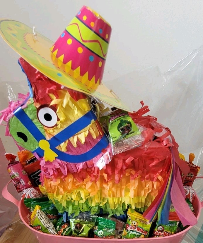 This Mexican Theme Gift Basket is the perfect way to celebrate any occasion. Filled with a variety of candies, it is sure to bring a smile to anyone's face. The basket is decorated with vibrant, multicolor items that showcase the rich culture of Mexico. Whether you're looking for a gift for a loved one or just want to treat yourself, this basket is a great choice. The basket is made with high-quality materials and is designed to last. It features a rustic charm that is sure to impress. The basket is perfect for all occasions and is sure to be a hit with anyone who loves Mexican culture. So why wait? Order your Mexican Theme Gift Basket today!