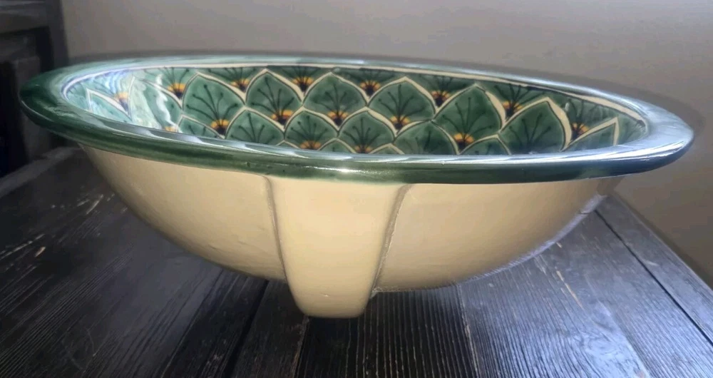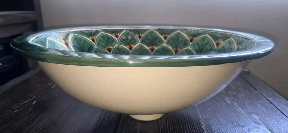 Modified Item: No Country/Region of Manufacture: Mexico Bowl Height: 13 in Material: Ceramic Type: Drop-in/Top Mount UPC: Does not apply Item Height: 6 in Sink Type: Bathroom Shape: Oval MPN: Does Not Apply Item Width: 13.75" Hardware Included: Sink Only Number of Faucet Holes: No Hole Item Length: 17 in Overflow Drain: Yes Bowl Shape: Elongated Brand: Talavera Inner Bowl Side-to-Side Width: 19" Inner Bowl Front-to-Back Length: 17 in Color: Multicolor Room: Bathroom Mounting: Drop-In, Undermount gtin13: Does not apply