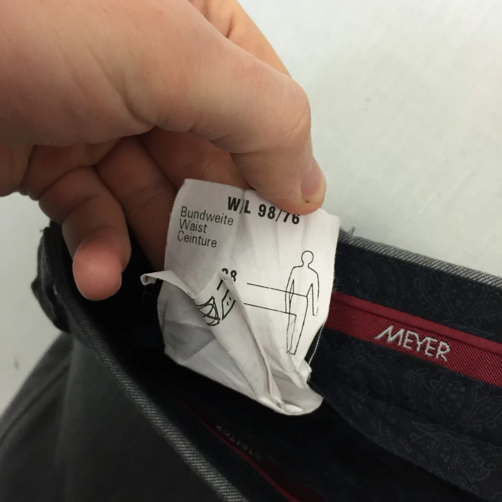 Rise: Mid (10-12 in) Pattern: No Pattern Leg Style: Straight Season: Autumn, Spring, Summer, Winter Handmade: No Type: Trousers Fit: Regular Seller Notes: “Good used condition, check below for full description & photos.” Size Type: Regular Pocket Type: Coin Pocket Waist Size: 38 in Garment Care: Machine Washable Colour: Grey Vintage: No Fabric Type: Canvas Closure: Button Style: Chino Material: Cotton Blend Country/Region of Manufacture: Unknown Department: Men Accents: Button Size: 38 Occasion: Business, Casual, Travel Inside Leg: 29 in Personalise: No Brand: Meyer