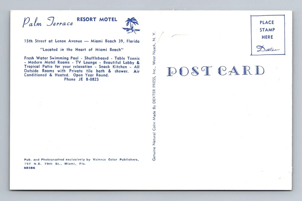 Miami Beach FL-Florida, Palm Terrace Resort Motel, Lenox Ave. Vintage Postcard
