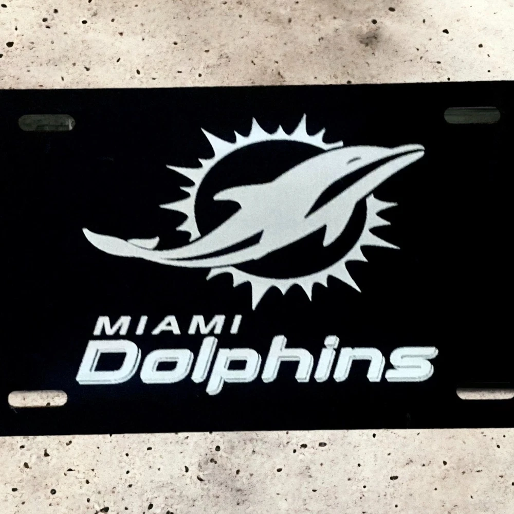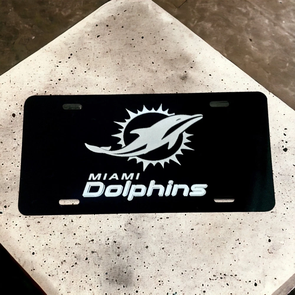 Show off your love for the Miami Dolphins football team with this stylish front license car tag. Made of durable aluminum, this matte-finished license plate features laser-engraved detailing of the team's logo and name. It's suitable for any car and can easily be attached with screw-on fasteners. This sports-themed license plate is road legal and has universal fitment, making it a perfect gift for any Dolphins fan. It measures 12 inches in length and 6 inches in height, and its sleek design is sure to turn heads on the road. Get your Miami Dolphins license car tag today and show your support for your favorite team!