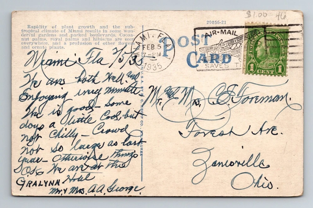 Theme: Cities & Towns Country/Region of Manufacture: United States Region: Florida Subject: Cities & Towns Unit of Sale: Single Unit City: Miami Postage Condition: Posted Era: Vintage Type: Printed (Lithograph) Country: USA Original/Licensed Reprint: Original