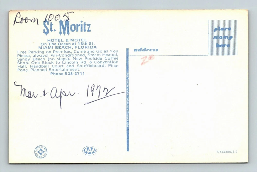 Miami FL-Florida St Moritz Hotel Motel Oceanside,Advertising Vintage Postcard