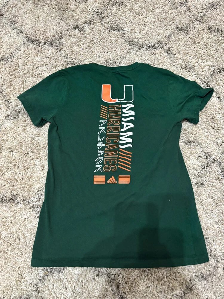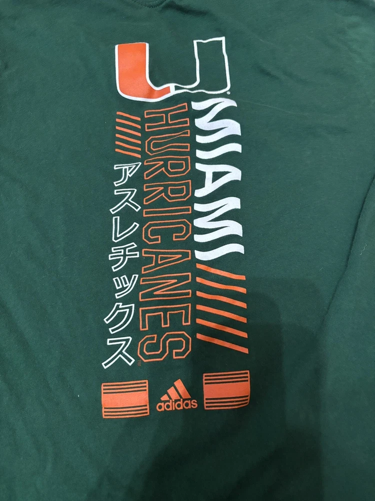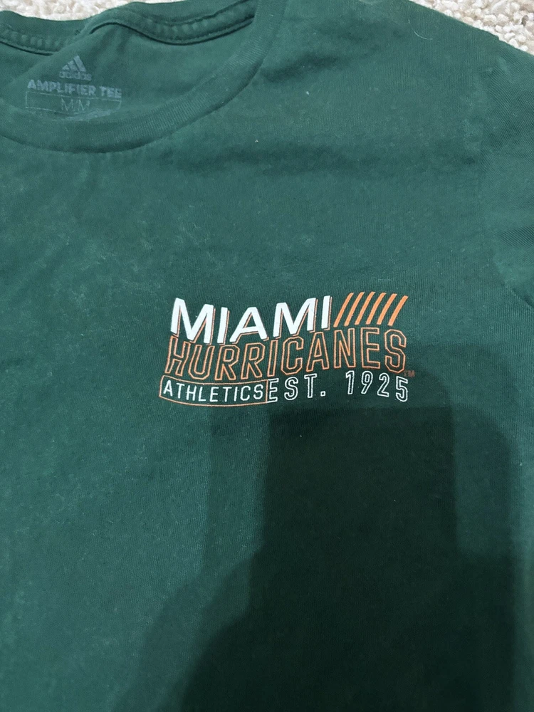Show your support for the Miami Hurricanes with this green Adidas amplifier short sleeve shirt. Perfect for any fan of the NCAA team, this shirt features the team's logo and is made with Adidas' signature style. The shirt is available in women's size medium and is ideal for any athletic occasion. Whether you're cheering on the team at a game or just showing off your love for them, this shirt is a must-have for any Miami Hurricanes fan. Visit my eBay store for more new and lightly used clothing, collectibles, and other items.