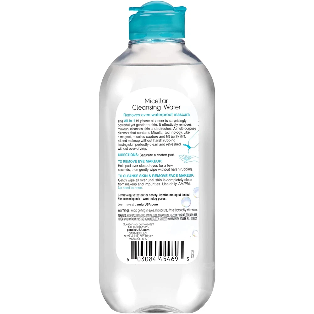 Micellar Water for Waterproof Makeup, Hydrating Facial Cleanser & Makeup Remover Product Details Garnier Micellar Cleansing Water for Waterproof Makeup: Use this gentle yet powerful makeup remover to remove stubborn waterproof makeup; Safe for use in the eye area, and for removing longwear lipsticks, while leaving skin clean and refreshed, never dry Micellar Water is effective yet gentle; It's simple, micellar cleansing water lifts away dirt, makeup, and excess oil, all in just a few swipes; No rinsing, no harsh rubbing just refreshed skin, and a face washed clean and cleared of impurities Remove tough makeup even the leading wipes can’t, leaves less waterproof mascara residue. Use Waterproof Micellar Cleansing Water plus Reusable Eco Pads. Garnier SkinActive was developed with gentle formulas and naturally derived ingredients to leave your skin looking fresh and healthy, no matter your skin type, Find the face wash, moisturizer, makeup remover, or mask for you This All-in-1 Micellar Cleansing Water is surprisingly powerful yet gentle to skin. It effectively removes even waterproof makeup, cleanses and refreshes skin. A multi-purpose cleanser that contains Micellar technology. Like a magnet, micelles capture and lift away dirt, oil and makeup without harsh rubbing, leaving skin perfectly clean and refreshed without over-drying. • All-in-1 cleanser and makeup remover, cleanses, removes even waterproof makeup and refreshes skin • Oil-Free, Alcohol-Free, Fragrance-Free • Micelle Technology attracts dirt, oil and makeup like a magnet without harsh rubbing • All skin types, even sensitive TO REMOVE EYE MAKEUP: Hold pad over closed eyes for a few seconds, then gently wipe without harsh rubbing. TO CLEAN SKIN & REMOVE FACE MAKEUP: Gently wipe all over until skin is completely clean from makeup and impurities. Use daily, AM/PM. No need to rinse. Avoid contact with eyes. If contact occurs, rinse thoroughly with water. Item model number 603084454693 Item dimensions L x W x H 2.73 x 2.17 x 2.73 inches Is Discontinued By Manufacturer No Product Dimensions 2.73 x 2.17 x 2.73 inches; 13.5 ounces Country of Origin USA Item Weight 13.5 Ounces Age Range (Description) Adult Scent Unscented Size 13.5 Fl Oz (Pack of 1) 2.17 inches x 2.73 inches x 2.73 inches. Weight: 13.5 oz Payment Details We accept all payments via Ebay using Credit Cards , PAYPAL , Apple Pay and many others Shipping Details We are always working hard to ensure your package arrives as soon as possible. Please understand that some factors like weather, high postal traffic, and the performance of shipping companies are outside of our control. Delivery & Return Policy Details We offer a 30-Day Return Policy on items in which you are not completely satisfied with. You have the option of a full-refund or an exchange of the item. No returns are available on items shipped outside of the USA.