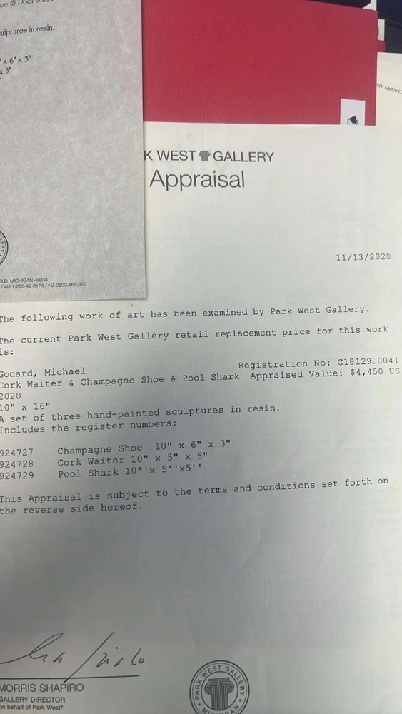Michael Godard Sculpture “Cork Waiter” hand painted resin sculpture