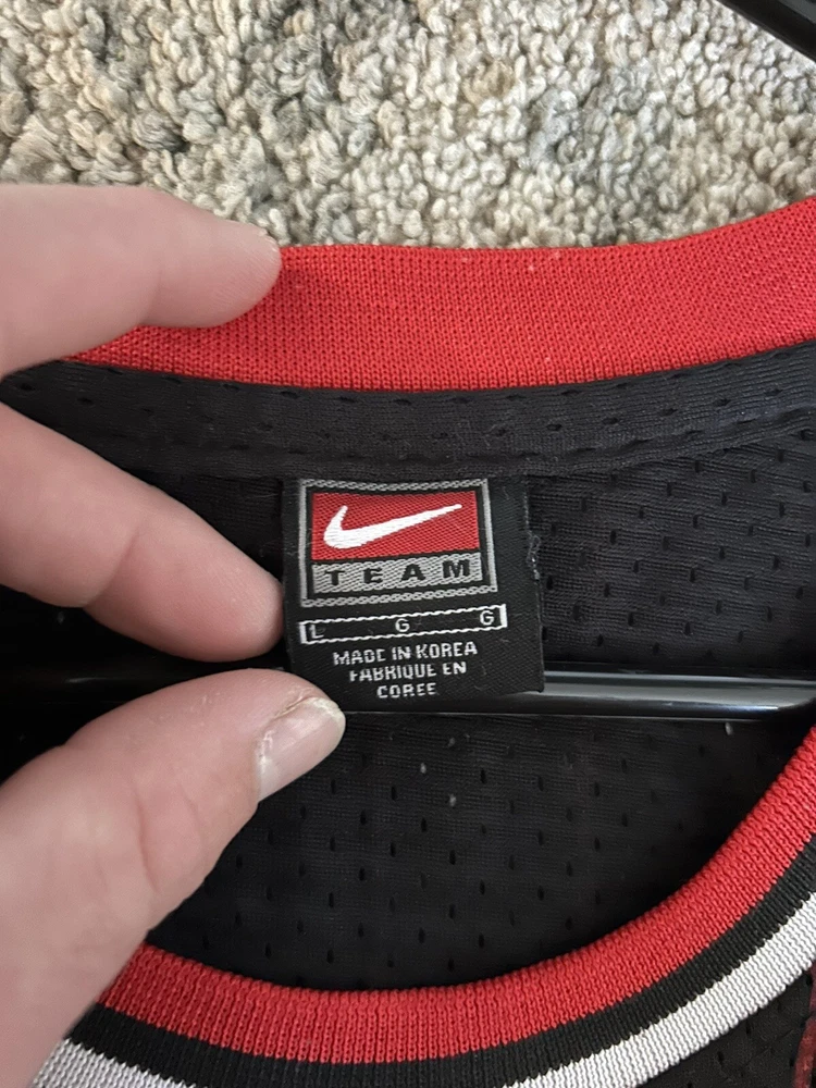 Show off your love for the legendary Michael Jordan with this retro black stripes #23 embroidery jersey. The jersey features stripes that pay homage to Jordan's 96-97 season with the Charlotte Hornets in the National Basketball Association (NBA). Made by Nike, this jersey is perfect for basketball fans of all ages and genders. It comes in a size L and is designed to fit comfortably. The jersey is black in color and has the iconic Nike logo on the front. Get this jersey today and add it to your collection of sports memorabilia and fan apparel.