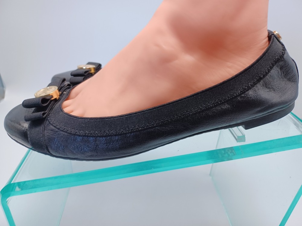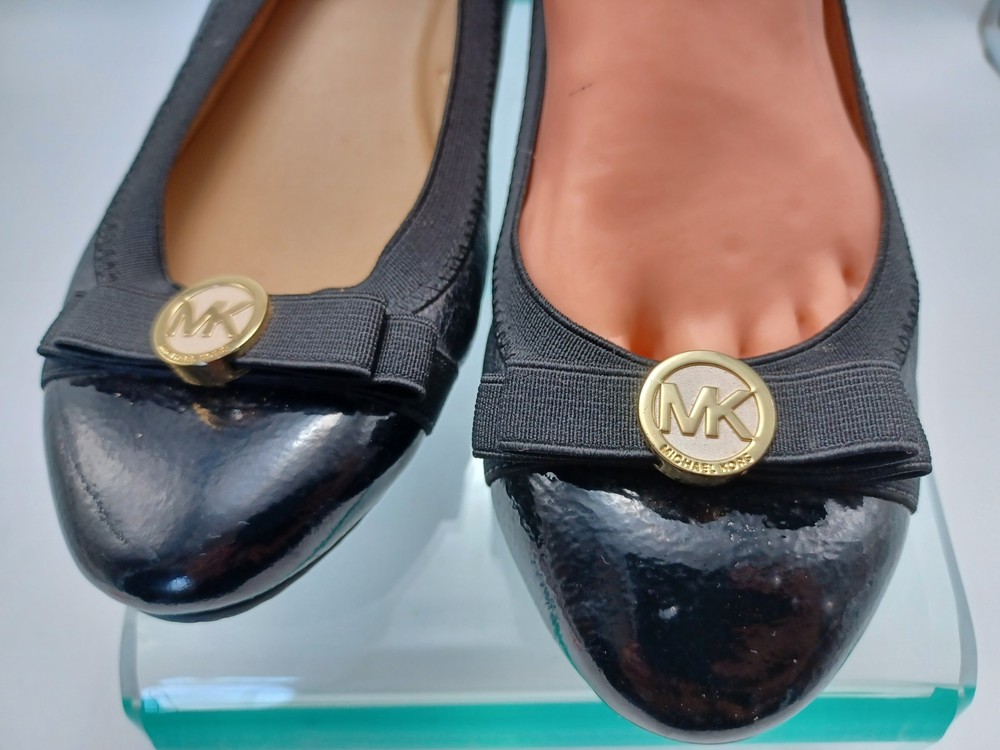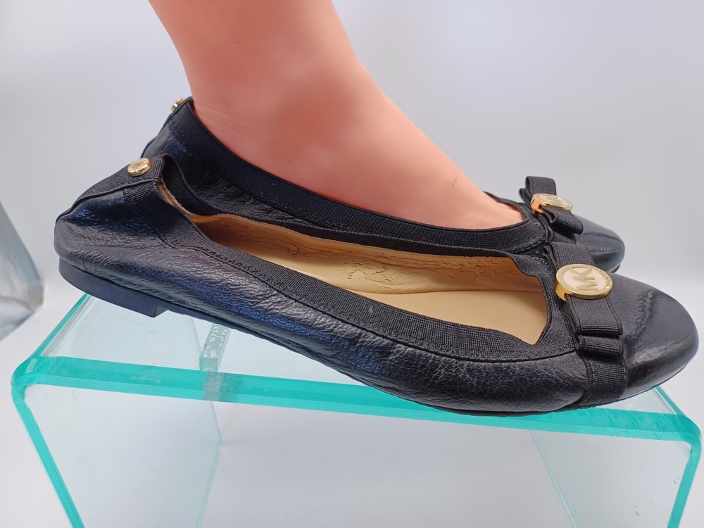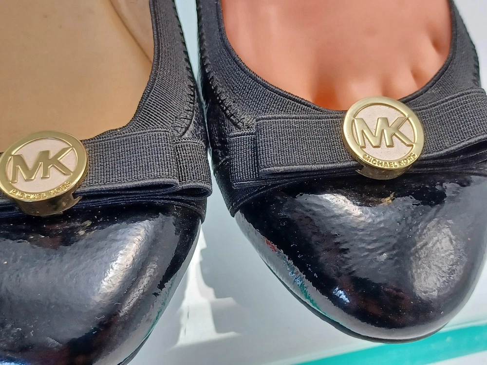 Michael Kors 7.5M Eur 38 Black Patent Toe Genuine Leather Manmade lining is cracked/peeling inside Good condition. Ballet flats ●○●○● Please note: On details.... Please review pictures and descriptions carefully and ask all questions before you bid. On feedback... I would appreciate positive feedback and always leave my customers positive feedback on good transactions. On concerns or issues.... PLEASE CONTACT ME FIRST, if there are any issues with your item. Please avoid negative or neutral feedback until I have had a chance to resolve any issues. Avoid opening a case and deal with me directly. I always reply quickly to my customers. On shipping.... I DO NOT offer overnight or Fedex shipping but do package & ship quickly. Many of my listings indicate Standard or Retail Shipping. I make an effort to ship faster methods, most often Priority or First Class, but reserve the right to ship standard mail if necessary (for large or heavier items usually). Make all shipping adjustment requests BEFORE buying. Reduced shipping is usually not available for discounted or best offer price reduced items. Shipping unavoidably calculates high for my Western US Buyers. Some small or medium sized items that are not going First Class can be reduced. Make an offer or make a shipping adjustment request BEFORE you buy. On items... I endeavor to inspect all items for any defects and do not sell such items unless these defects are listed or pictured. Of course, I can miss things at times. I also take plenty of photos so please inspect these carefully as they are part of the description. To keep my prices low, I am only able to spot clean items and do not meticulously clean or dry clean used items. Measurements are approximate. On returns.... I work with my customers however I can. However, please understand that I am RARELY ever able to refund shipping costs because these are nonrefundable to me. Return shipping is the responsibility of the buyer.
