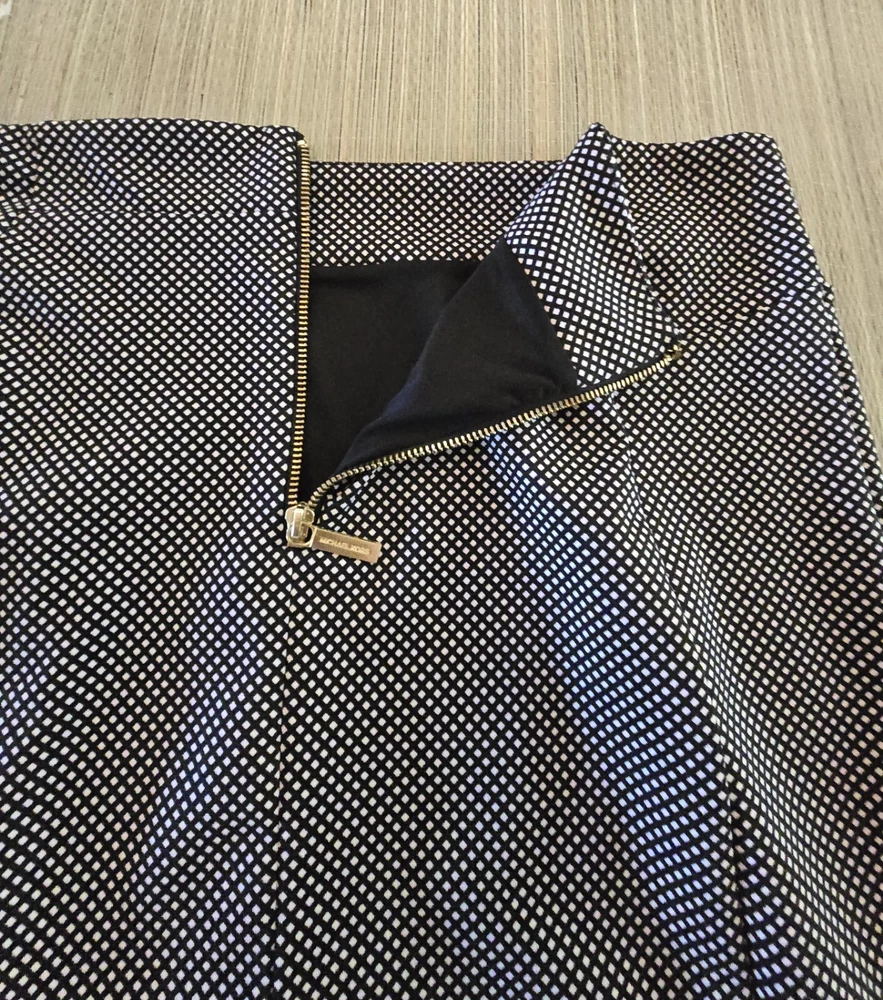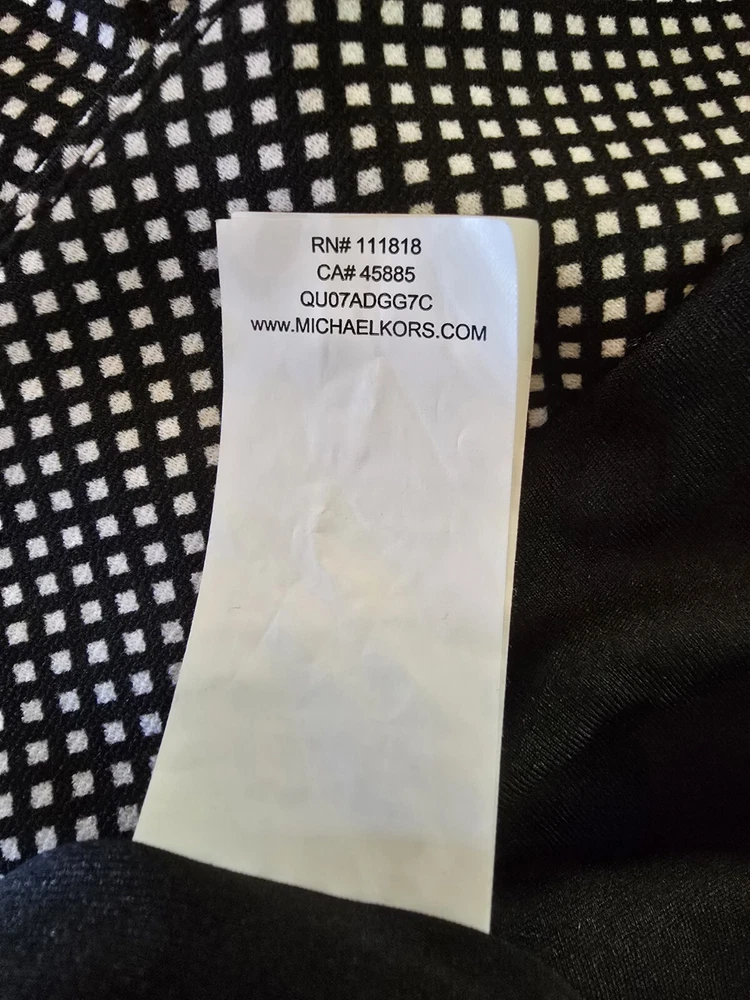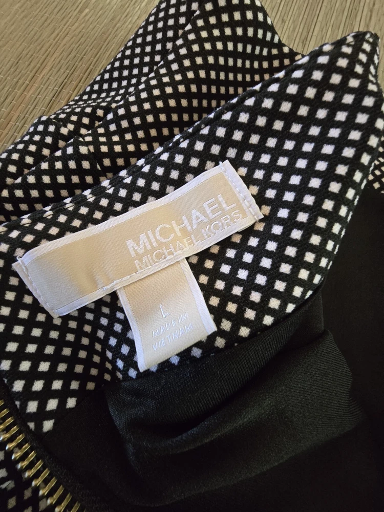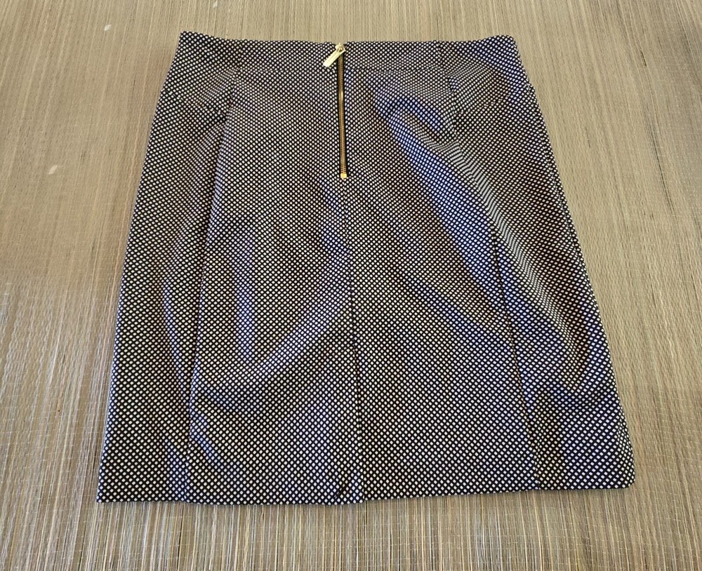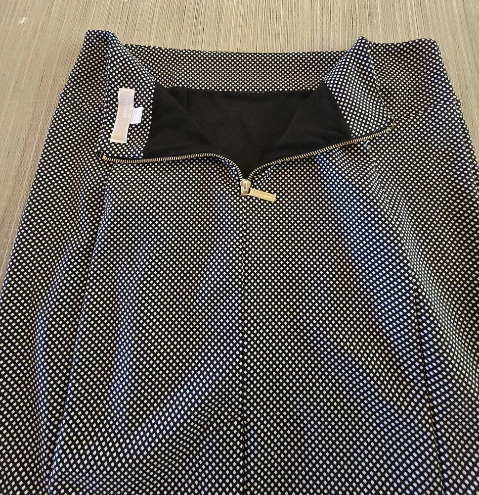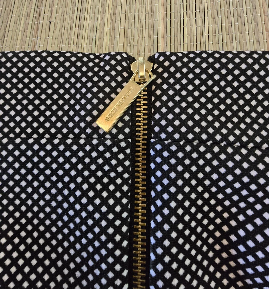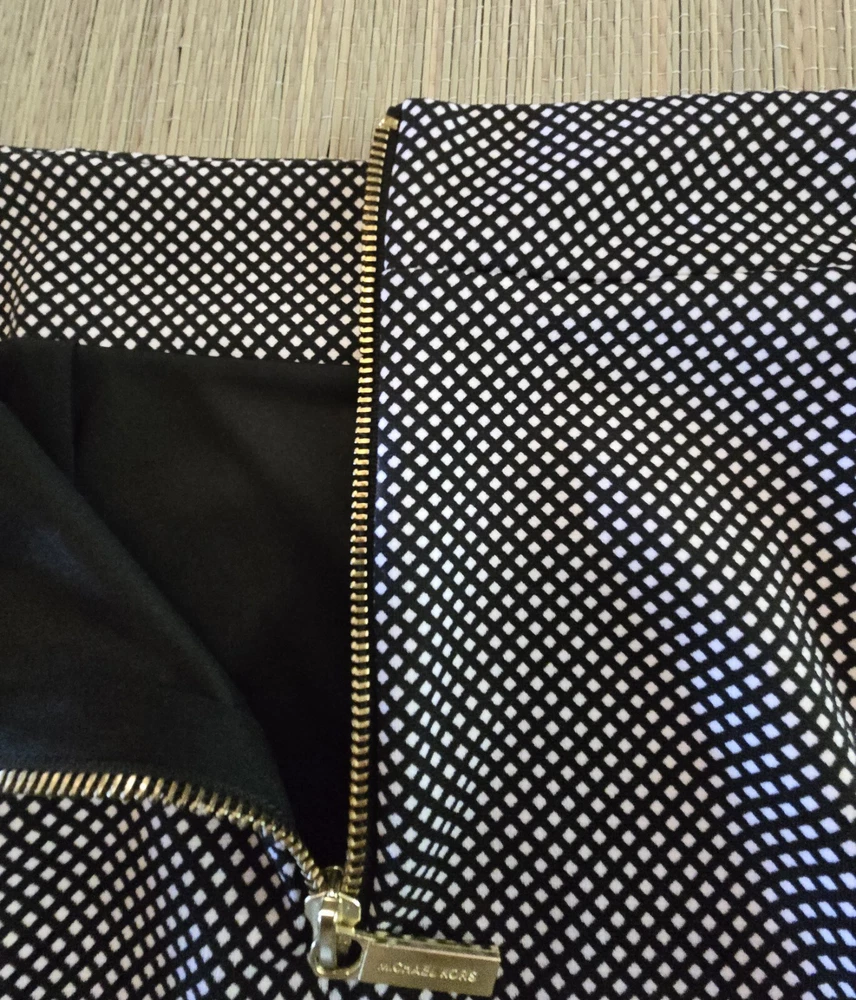 ❤️READ MEASUREMENTS FOR FIT ❤️ Michael Kors Knee-length Pencil Skirt Black and White Print Women's L Pre-owned EUC Very nice fully lined knee-length straight pencil skirt in black with all-over print of tiny white diamonds Exposed gold tone zipper in back with logo zipper pull Fully lined in black fabric Skirt: 95% Polyester 5% Elastane Lining: 100% Polyester Machine Washable Laying flat skirt measures 17" from side to side at waist, 21" from waistband to hem, and 20.5" across widest part ALL MEASUREMENTS ARE APPROXIMATE EXCELLENT Pre-owned Condition ❤️READ MEASUREMENTS FOR FIT ❤️