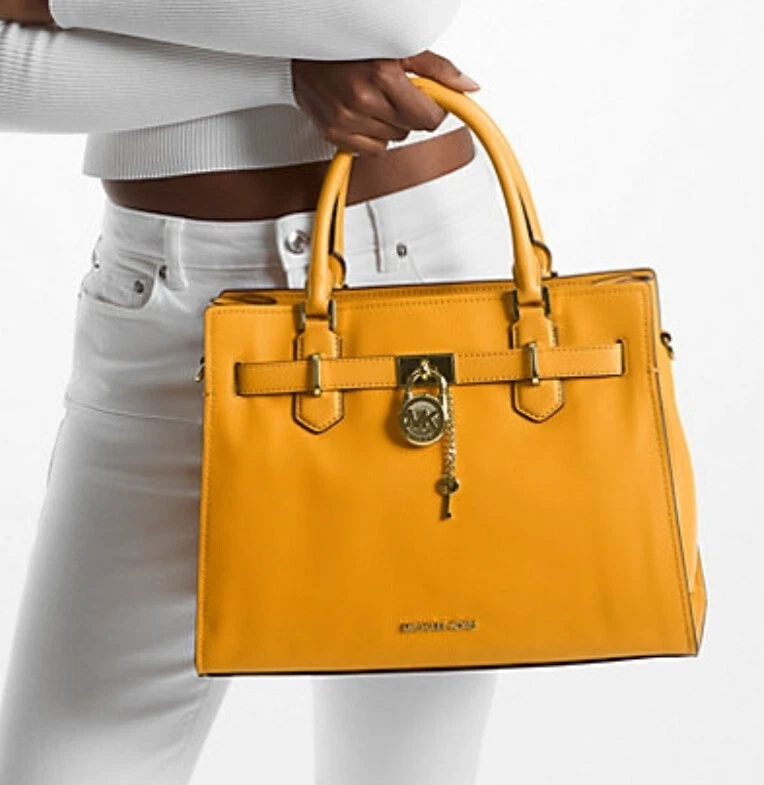 MICHAEL KORS HAMILTON MEDIUM SATCHEL SHOULDER CROSSBODY BAG GOLDEN ROD, NWT. Please review all pictures for more details and measurements.