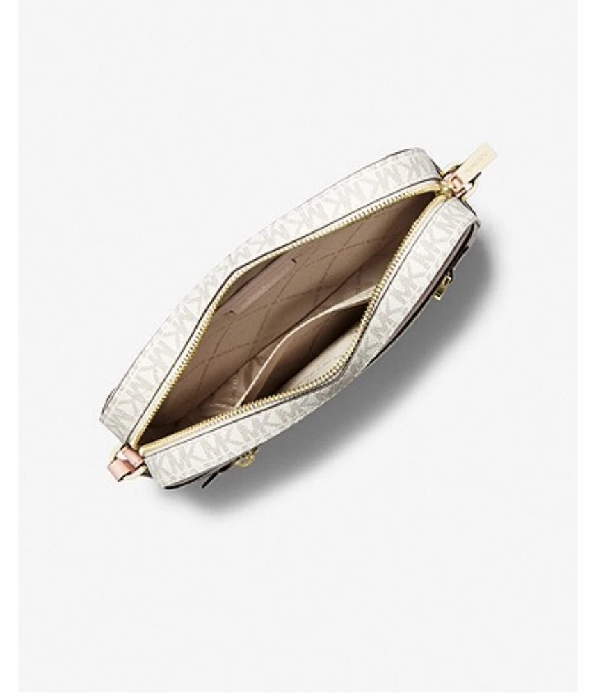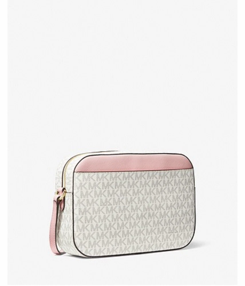 Jet Set Large Saffiano Leather Crossbody Bag - Powder Blush MLT Crafted from our Signature-print canvas for novelty appeal, the Jet Set crossbody bag is designed in a sleek, compact silhouette. A polished chain-link zipper pull delivers standout style, while the pocketed interior is perfectly sized for a day’s worth of essentials. Wear it while commuting, running errands or taking a weekend getaway. DETAILS • Crossbody bag • Logo-print canvas • 89.4% coated canvas/9.6% polyester/1% polyurethane • Gold-tone hardware • 9.5”W X 6.5”H X 2”D • Exterior details: detachable crossbody strap, back slip pocket, front slip and zip pockets • Interior details: back and front slip pockets • Lining: 100% polyester • Zip fastening • Dust bag not included • Imported