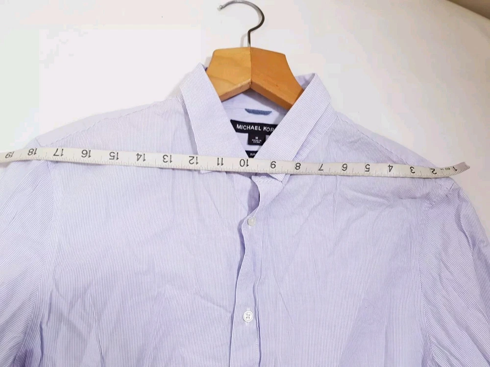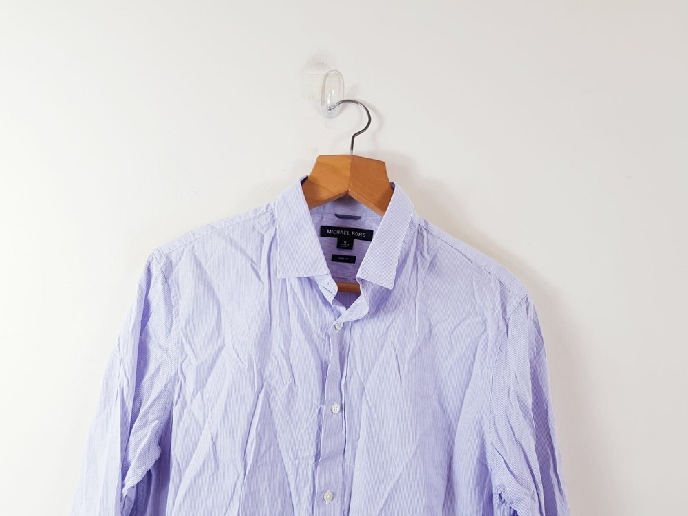 This Michael Kors men's shirt is a classic fit button-up style made of white and blue striped cotton. It features a collared neckline with long sleeves and a spread collar. The shirt is machine washable and designed for casual wear. Size Medium. Made in the United Kingdom. In Good Used Condition Measurements In inch : Please see photos above for all measurements I will ship this item out via Evri 2-3 Day Mail with a tracking number for confirmation I ship items out EVERY DAY so EXPECT a QUICK delivery! Please feel free to ask any questions you may have I answer most questions instantly! PLEASE NOTE THAT ALL OUR ITEMS ARE %100 AUTHENTIC Please Note that all our items are from smoke and pet free Environment. #07/01/25# (B275) PLEASE VISIT MY STORE AND CHECK MY OTHER ITEMS THANK YOU