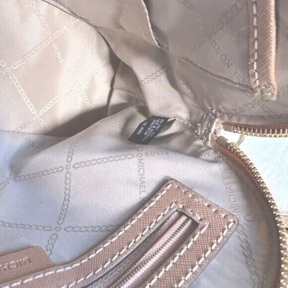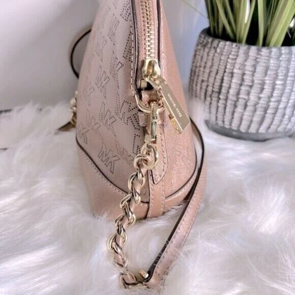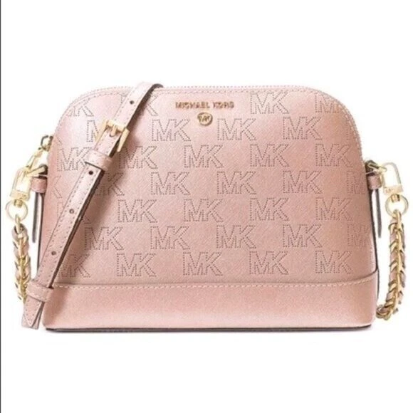 A chic dome silhouette delivers a versatile look with this leather crossbody from Michael Kors. 9" W x 7" H x 3.5" D Material: Saffiano Leather; Trim: Saffiano Leather; Lining:100% Polyester Top Zip Closure Interior:1 Back Zip Pocket, 1 Front Slip Pocket Exterior:1 Back Slip Pocket Gold-tone hardware 100% Cow Leather Wipe clean Imported Listing and template services provided by inkFrog