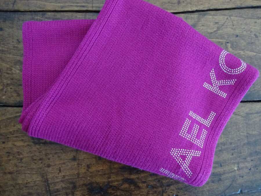 MICHAEL KORS SIGNATURE KNIT PINK SILVER WOMANS WINTER SCARF O/S Preowned in excellent condition...raspberry pink Michael Kors womens cozy knit winter scarf....with shiny silver mini studded MICHAEL KORS signature. One size (11x78") 100% ACRYLIC HAND WASH COLD/DRY FLAT Smoke and pet free Customer satisfaction is a top priority. Please contact me within 3 days of receiving your item if there is a problem. If for any reason you decide to return your purchase, please read the following details of my return policy. Item must be returned within 30 days of receiving the item. Items must be returned in unopened packages as received. Linens can pick up lint, odors, hairs, pet hairs, stains, etc. so I do not accept the return of any items that have been removed from packaging and then refolded back in. Also, color variations can occur from one monitor to another and cannot be used to say that an item is not as described. If you are returning because the color is not as you thought, the reason will be considered as buyer's remorse. For items returned due to buyer's remorse, buyer pays for return shipping. Feedback will be given following your receipt of item(s) and your posting of a positive transaction experience. I am not an authorized distributor nor a representative for any of the designers or labels I offer. However, I can guarantee 100% authenticity as I buy from major department stores and retail outlets. All items are brand new and first quality, unless otherwise noted. Thank you for your consideration! See my other listings for more great items! Immediate payment required. Shipping method will be the most economical based on the zip code of buyer. Order will ship within 24 hrs of purchase. Tracking will be uploaded to buyer's transaction page. There will be a shipping surcharge if you are a resident of Alaska, Hawaii, Puerto Rico, or other US territory outside of the continental United States. txzj pxzj37701 txzj-11 txzj40 txzj83 txzj115