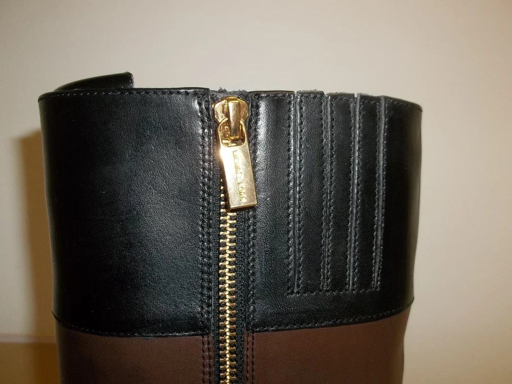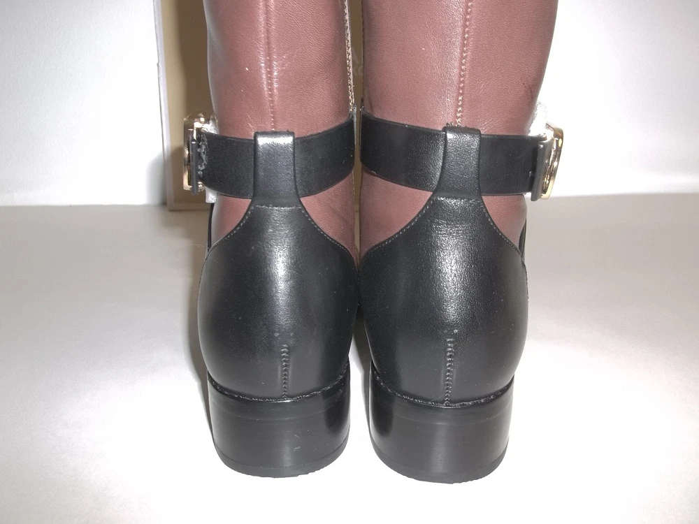 Michael Kors Size 5.5 M BRYCE TALL Black Mocha Leather Boots New Womens Shoes -Style: 40F5BYMB8L -Color: Blk/Mocha -Leather upper -Leather and textile lining -Leather insole -Man made outsole -Heel height is approximately 1.25 inches -Shaft height is approximately 14.75 inches -Top to bottom is approximately 16 inches -Boot opening measures approximately 15 inches and flexible -Emblem and zipper are gold color