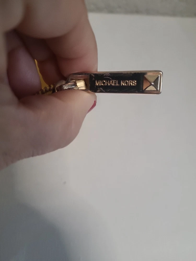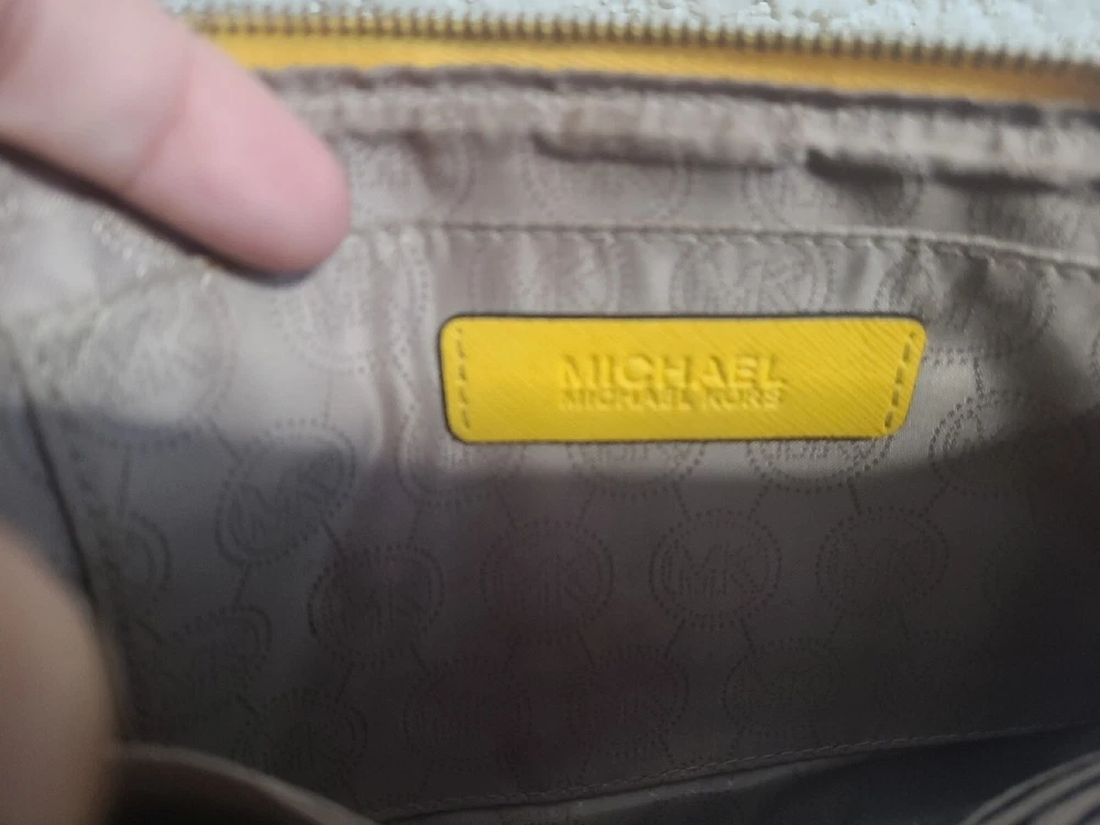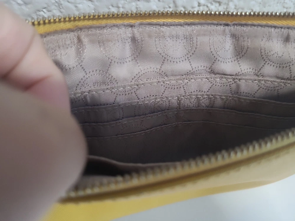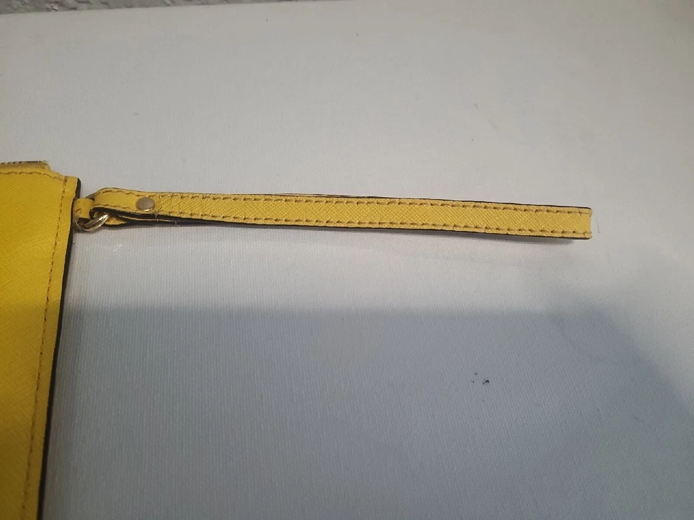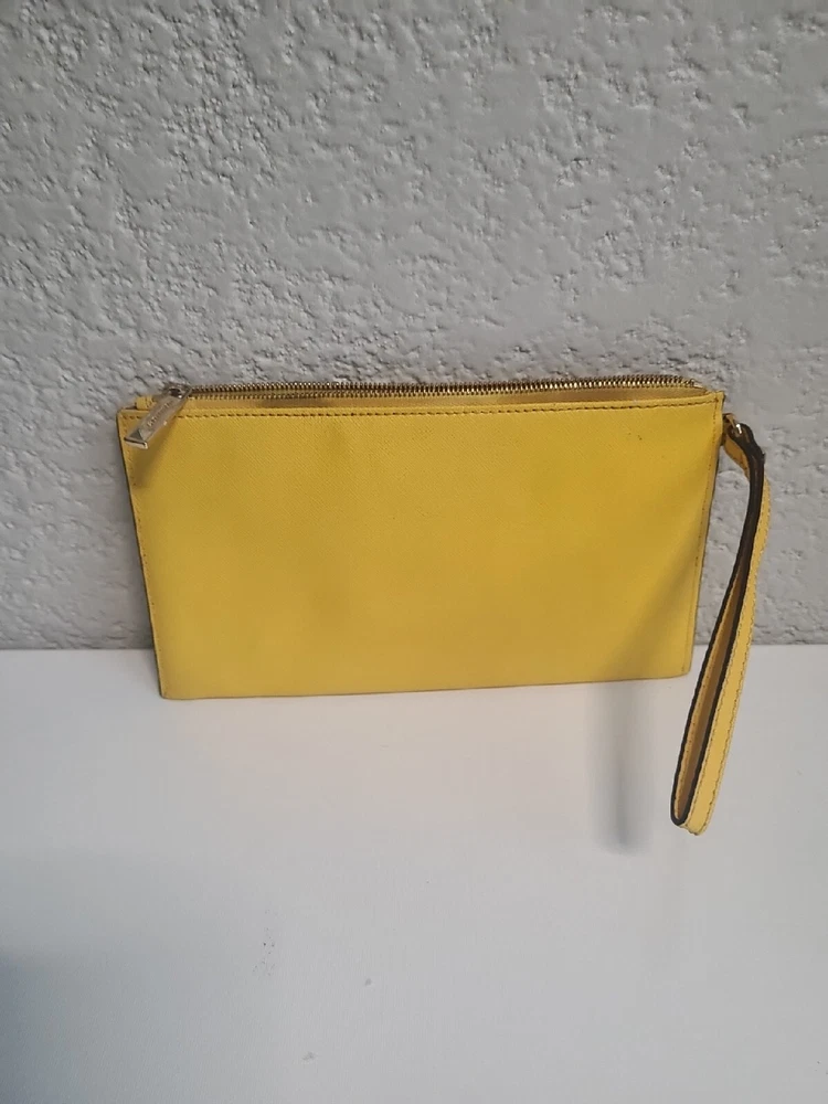 This chic Michael Kors clutch is a standout piece with its bold yellow color and stylish stud detailing. The compact size (10" x 5.5") makes it perfect for nights out. There’s minor discoloration near the zipper, but it’s barely noticeable. Great pre-owned condition at a steal! Shipping was smooth with USPS. Love it!