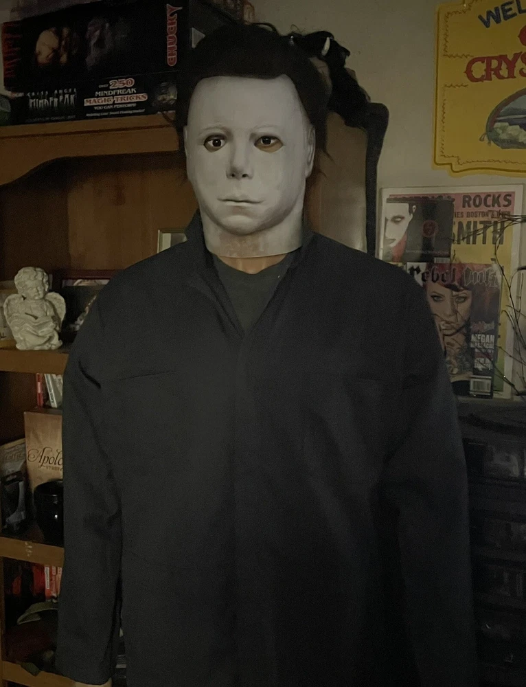 Halloween 78 Michael Myers life size figure. Mask is a ( High Quality) 78’ Nemesis made by the talented Dallas of ShapeKillerStudios. New Charcoal grey Red Kap coveralls. Grey undershirt, plastic Spirit Halloween knife. Boots are not included in sale! They are a sz 9.5 and fit him snug. So you will receive Mannequin, mask , coveralls, undershirt, and knife pictured. NO BOOTS INCLUDED! Everything will ship in the Mannequin’s original box. Size 43x16x15 Also included is a heavy metal base stand for mannequin not pictured. He stands up very well without it . just proped up against something. Willing to work with serious buyers a little on price due to high shipping cost.