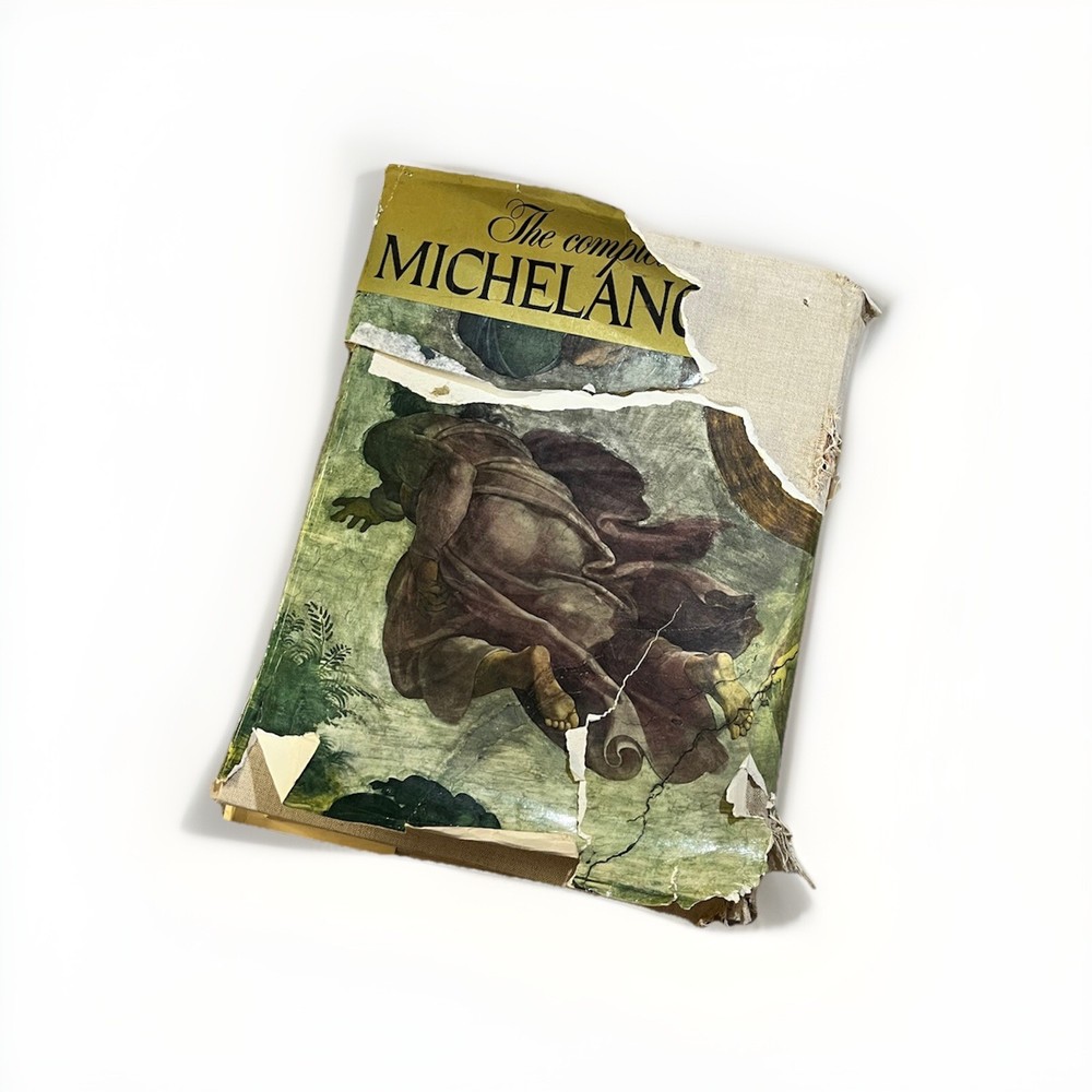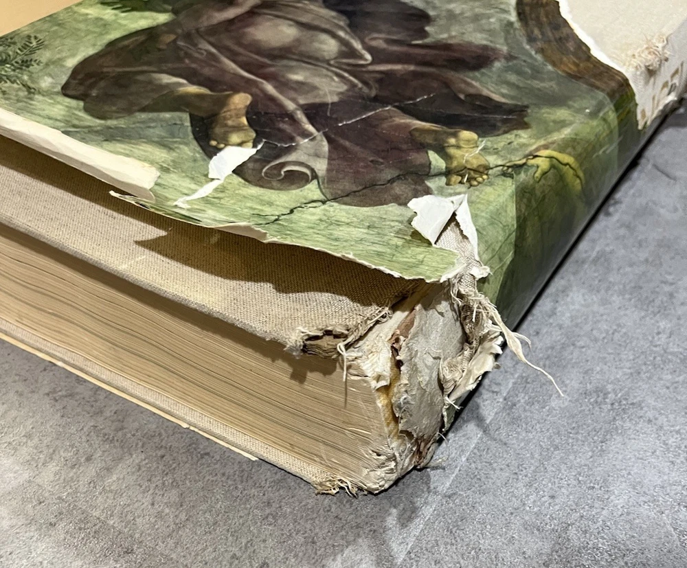 Cover sleeve and binding is very distressed. Please examine the photos to assess condition. The inside pages of the book are crisp and clean.