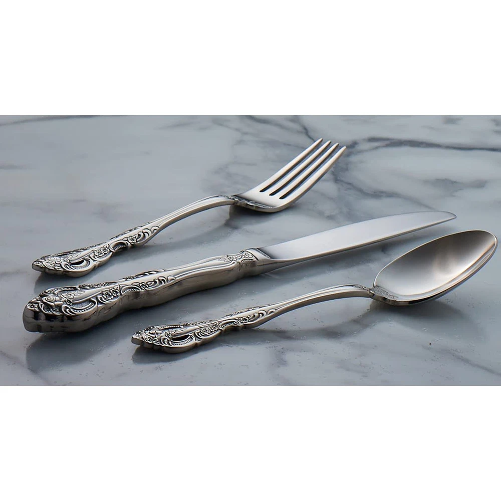 The creation of a unique and unforgettable dining experience – this is ’s mission. Attempts to achieve our ideal over the last nearly 150 years have made us the tabletop industry leader. Since 1880, has been, and continues to be, a synonym for luxury. There’s silverware. And then there’s . Satin or mirror, modern or classic, simple or ornate – we have the perfect fit for any restaurant or household. This pattern is 18/10 stainless steel. Built to last a , the finest metals mean maximum durability and rust resistance. The result is luxury you can hold. INCLUDES: This silverware set contains (4) Dinner Forks DECORATIVE DESIGN: Ornate. Elegant. Unique. Michelangelo represents the pinnacle of ornamental embellishment, balance, and form. On the table this design has the presence of sterling, and the feel of quality. Sophisticated and enduring, Michelangelo is timeless. HIGHEST QUALITY: What distinguishes silverware to the touch? Finish and weight. This expertly crafted pattern is mirror finished and heavy in the hand. The result? Perfection. FINEST STAINLESS STEEL: Silverware is all about metals. 18/10 stainless-steel silverware is made from the world’s best. Impervious to rust and tough, buy what lasts a – or even more.