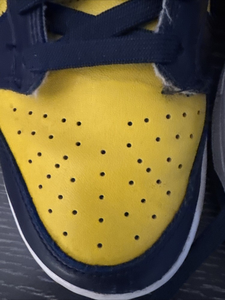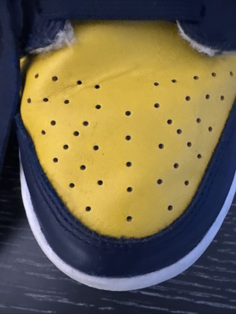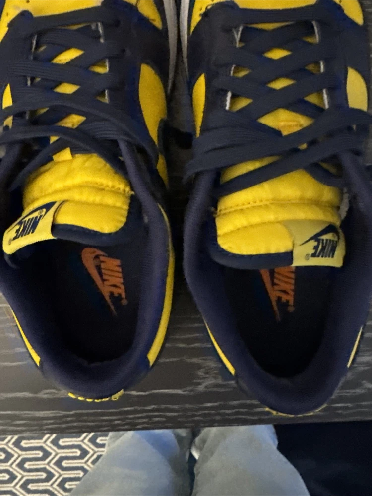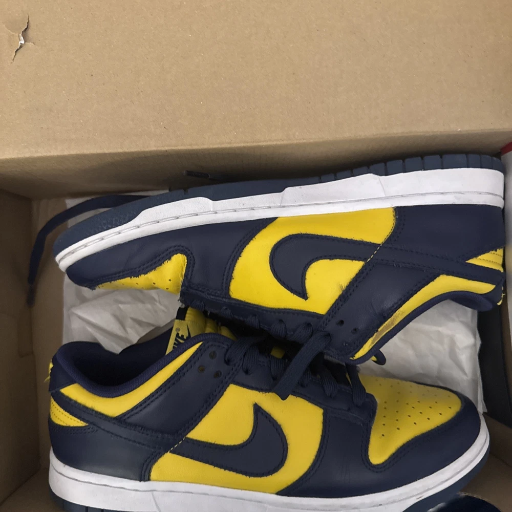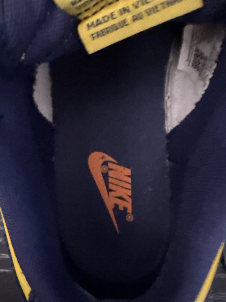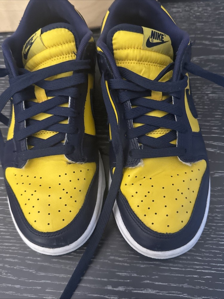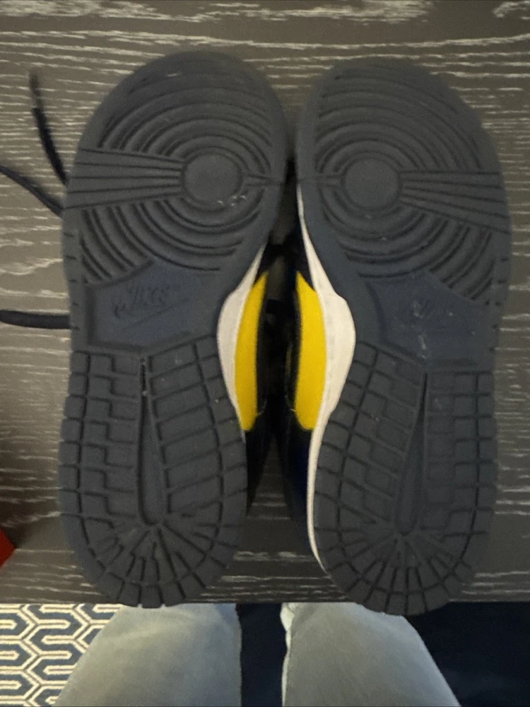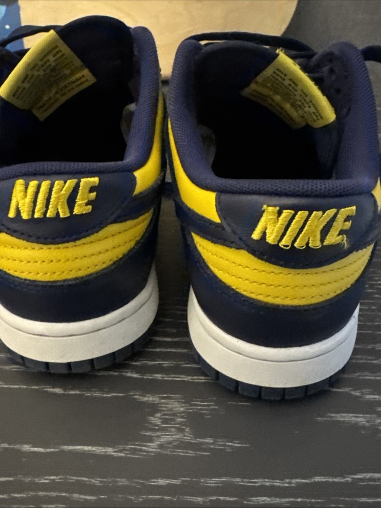 Original box included The Michigan Dunks are a pair of athletic sneakers designed for boys with a lace-up closure and a multicolor design featuring the logo accents. Made by Nike, these shoes are crafted with leather upper material and a rubber outsole for added comfort and durability. Ideal for spring season, these sneakers are a stylish and practical choice for active kids seeking both style and performance in their footwear.