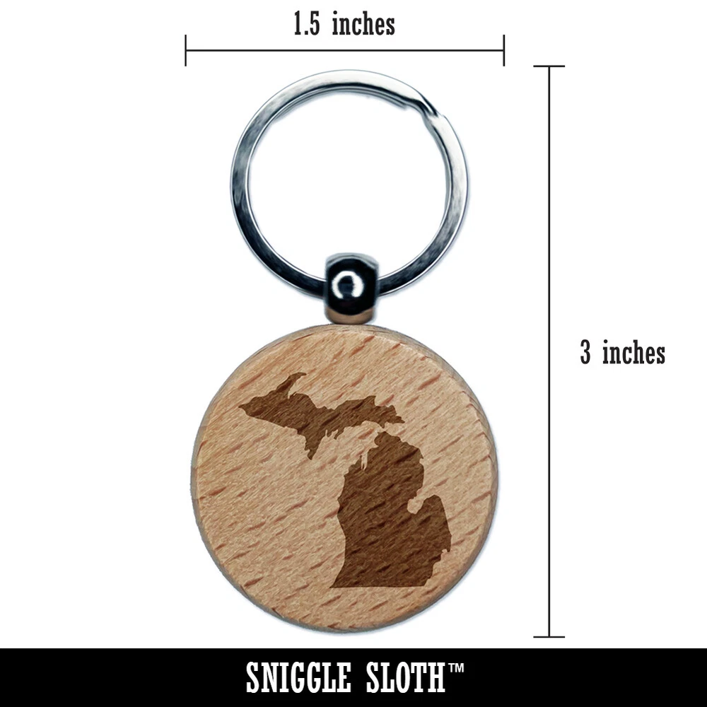 Michigan State Silhouette Engraved Wood Round Keychain Tag Charm