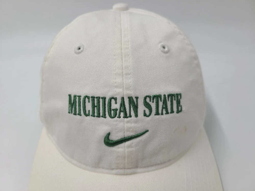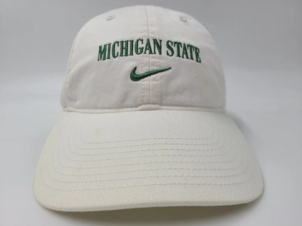 Has stains/discoloration on the brim, front, and side as seen in photos. Michigan State University Spartans Nike Center Swoosh Strapback Hat Cap Men NCAA. EACH ADDITIONAL HAT PURCHASED IS ONLY $1 ADDED SHIPPING!