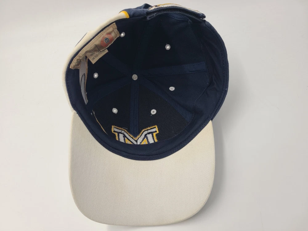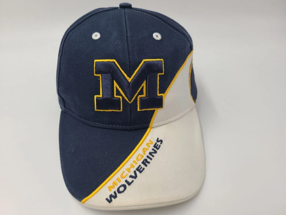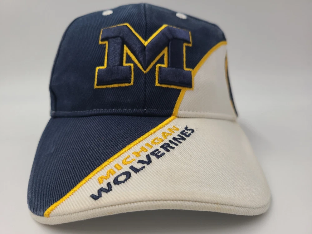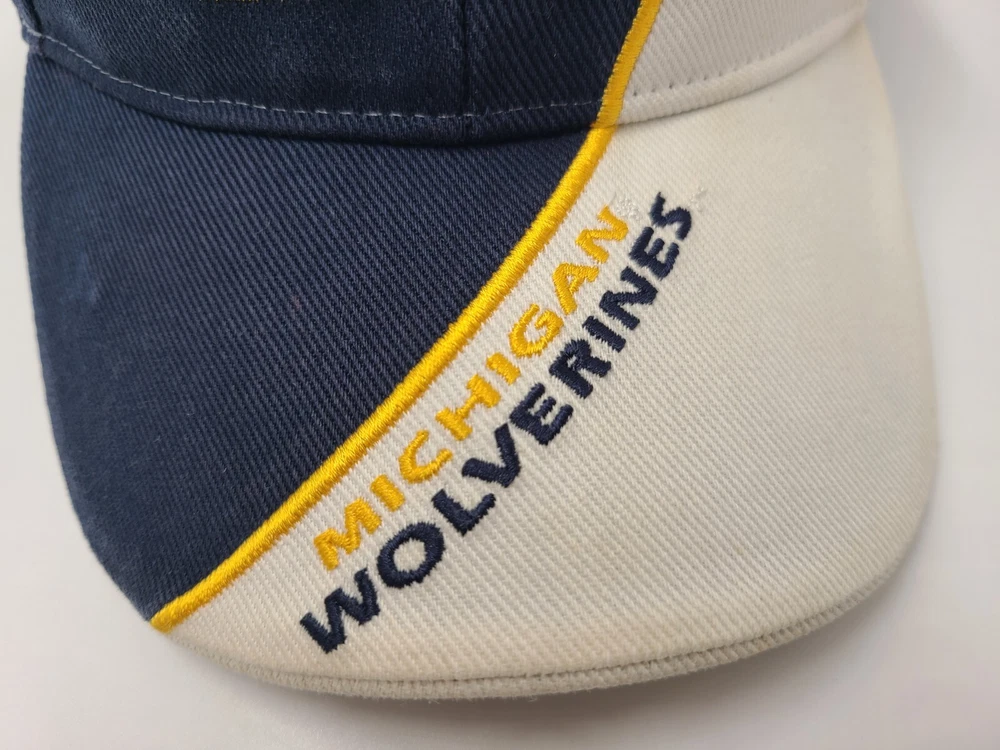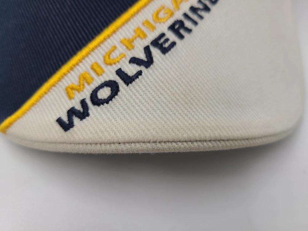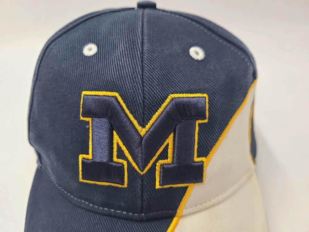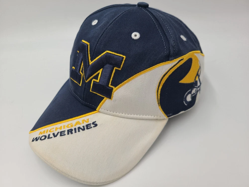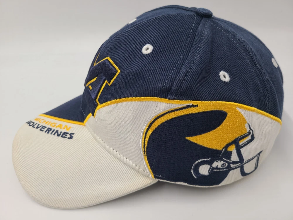 Has stains/discoloration on the brim, sides, and underneath the brim as seen in photos. Michigan Wolverines Football Helmet Twins Enterprise Adjustable Hat Cap Men NCAA. EACH ADDITIONAL HAT PURCHASED IS ONLY $1 ADDED SHIPPING!