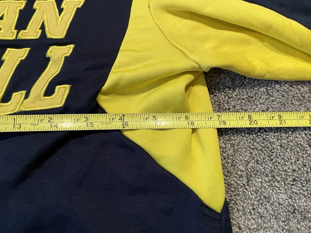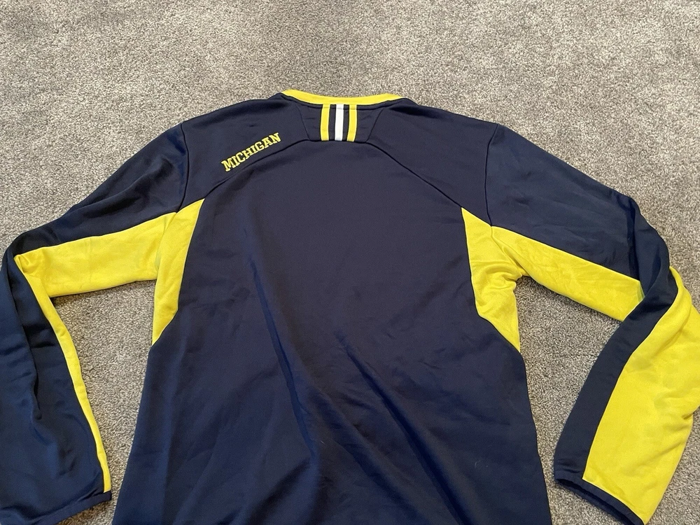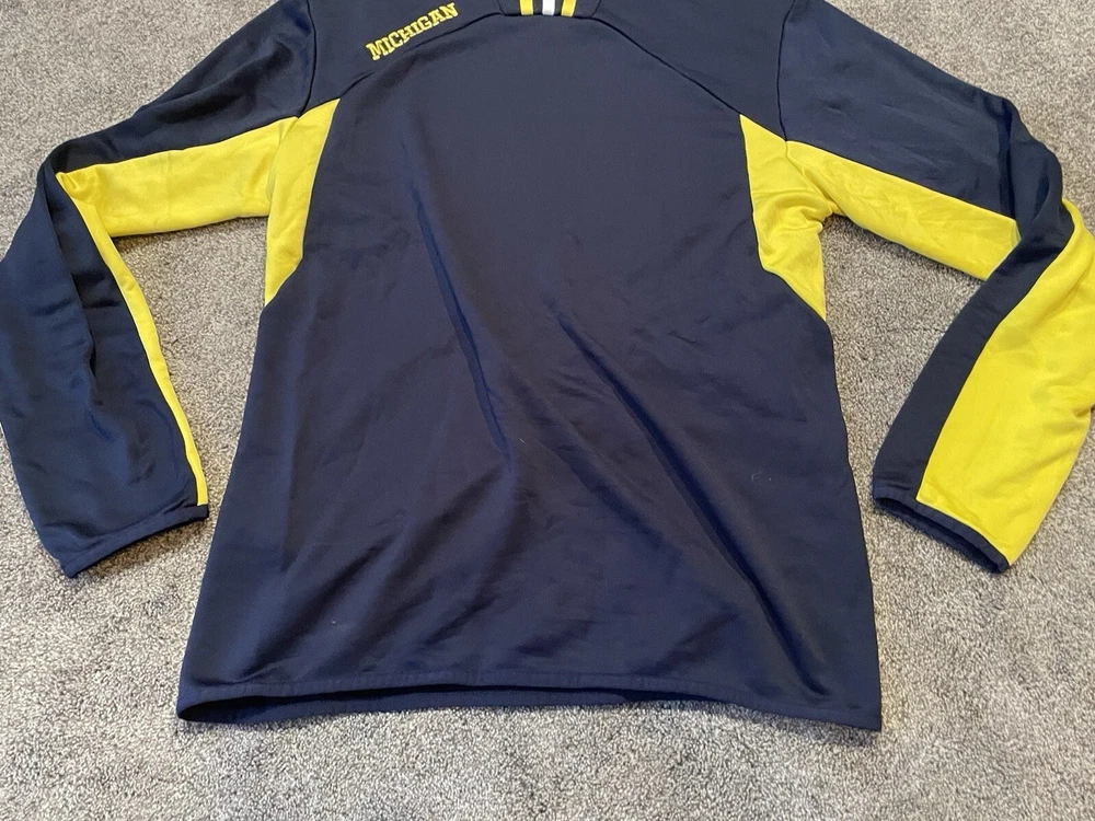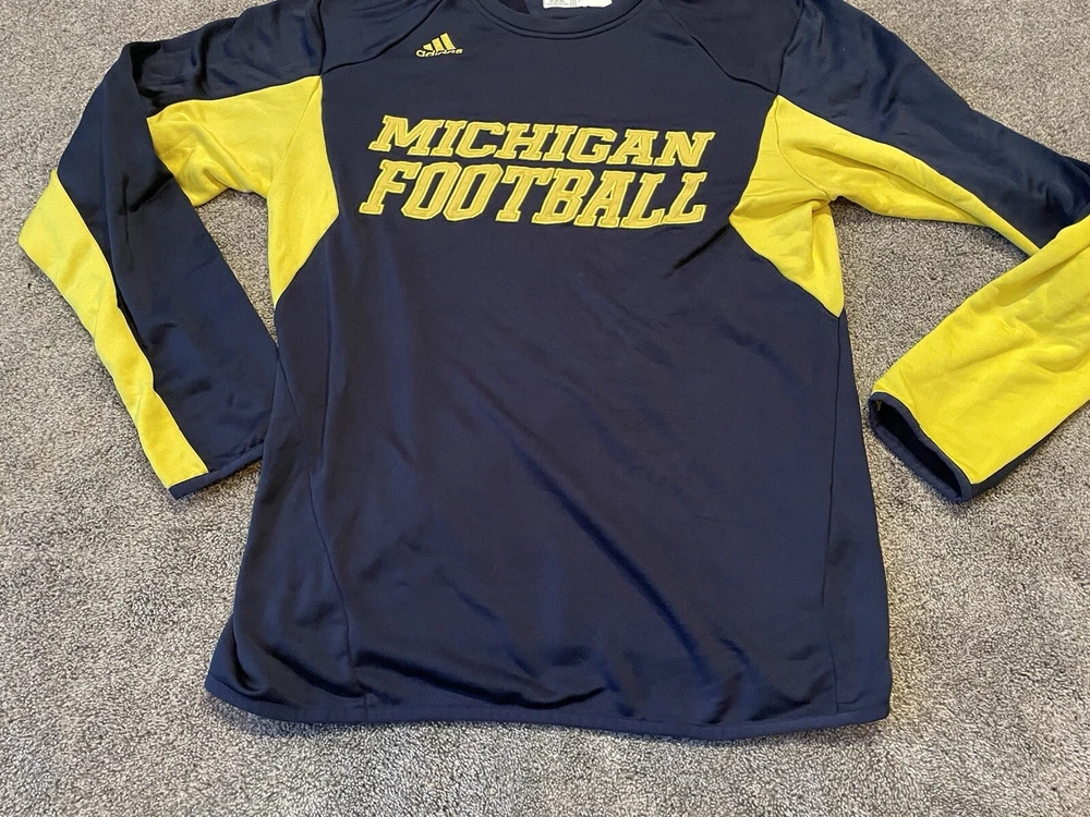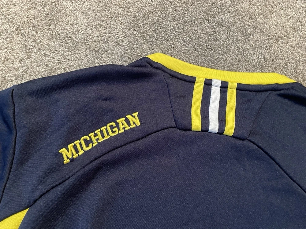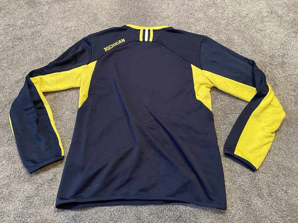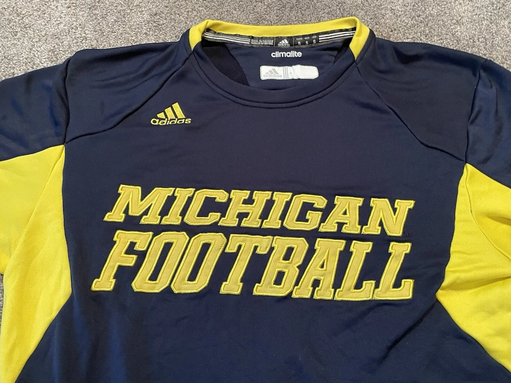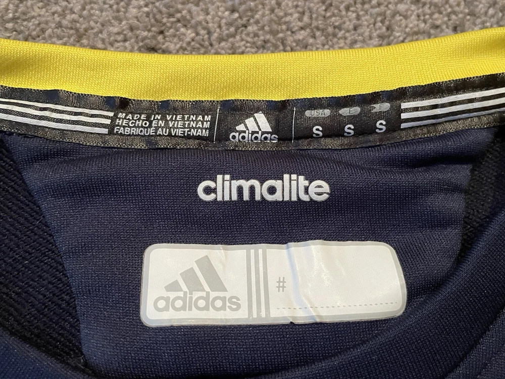 Elevate your game day attire with the Adidas Michigan Wolverines Climalite Warmup Shirt. Designed for the dedicated fan, this shirt features vibrant blue and yellow hues that showcase your team pride. The men's size small fits comfortably, allowing for ease of movement as you cheer on your team or hit the field. Crafted to provide both style and functionality, this shirt is a staple for any soccer enthusiast. The Climalite technology ensures you stay dry and comfortable, whether you're practicing or watching from the stands. An officially licensed product, it's perfect for regular season games and any soccer-related event.