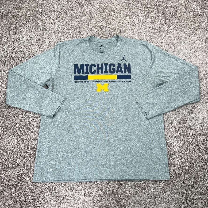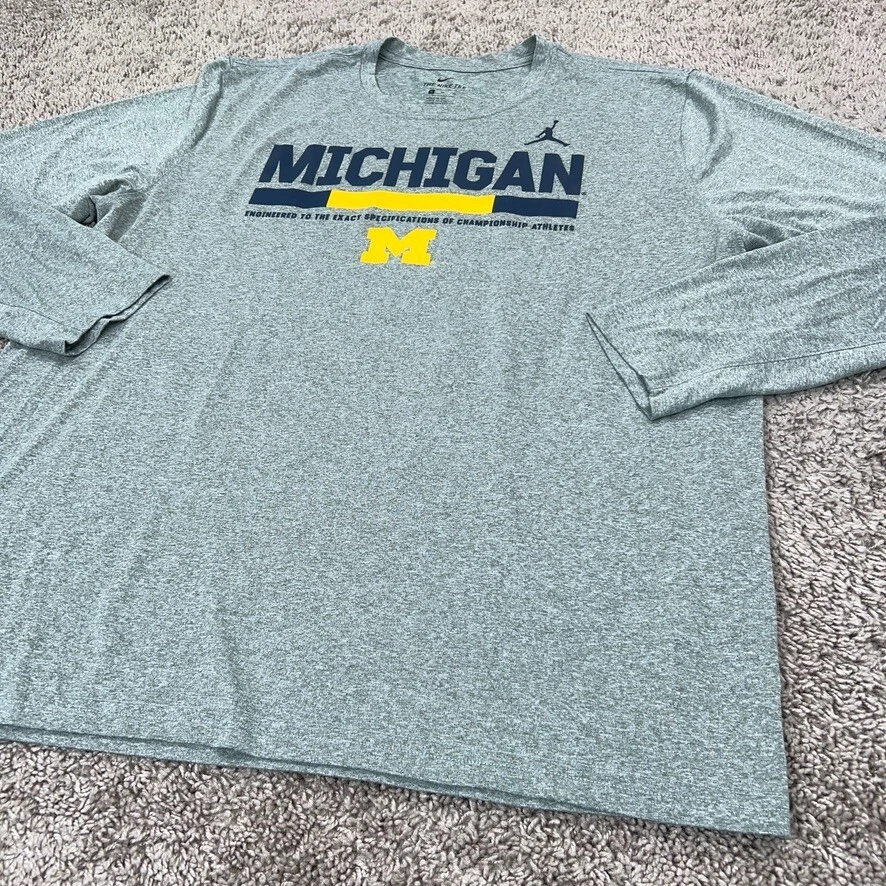 Michigan Wolverines Shirt Mens XL Athletic Gray Nike Jumpman Jordan Performance Condition: - Overall in good used condition. - No rips, stains, or holes. - Nice graphics. Size: - Mens XL. Measurements: - Previous washings may change the sizing written on the tag. - Please refer to the photos above for all measurements. - Please compare our measurements to that of one of your favorite garments. - Please note, item measurements are approximate . All items are bagged and sealed after being photographed, then stored in a smoke free environment to ensure the item is exactly the same as when photographed. I carefully package and ship daily. Feel free to contact me with any questions. All items have been washed per eBay standards & policies.