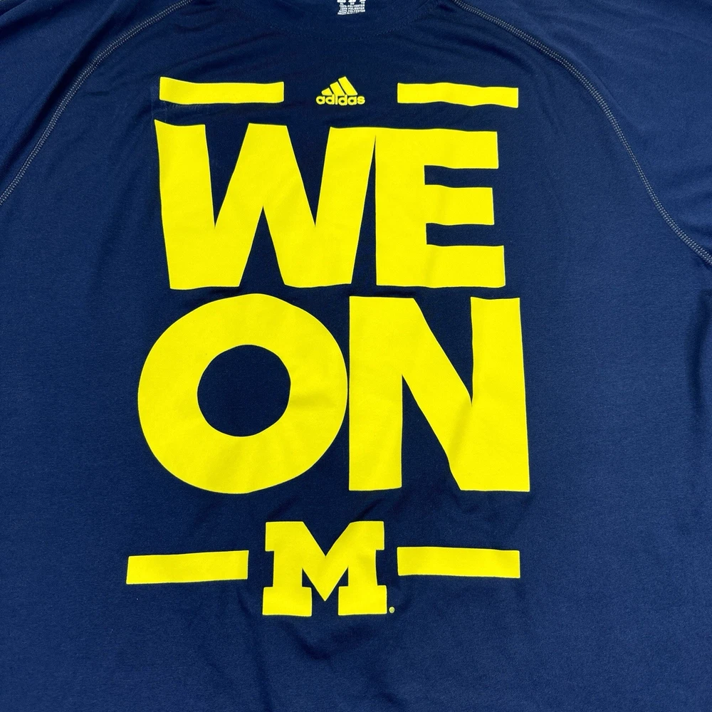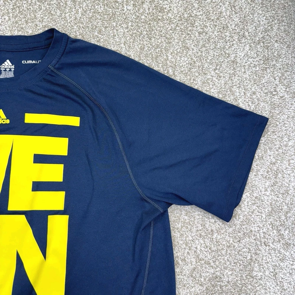 Michigan Wolverines T Shirt Mens XL Blue Yellow Short Sleeve Raglan Adidas Climalite. Condition is Pre-owned. Shipped Standard. See Photos With Measurements . Item Has Been Clean Per Ebay Standard And Policy.