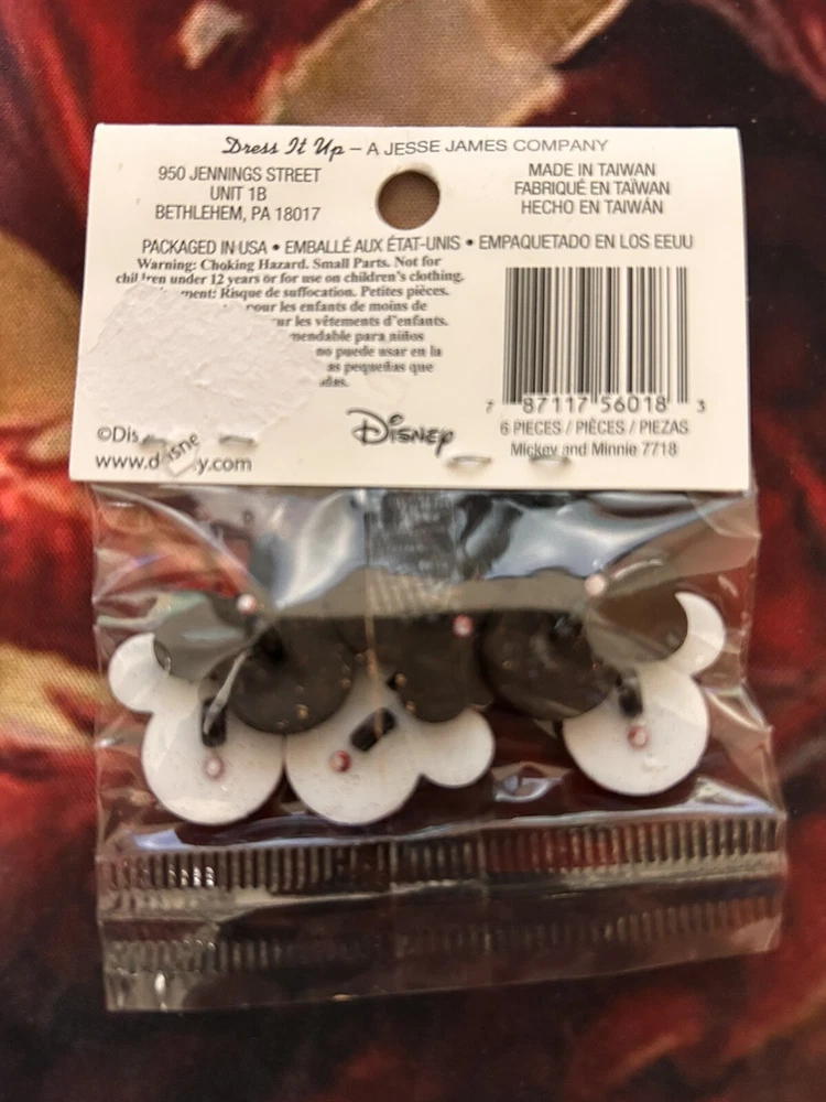 Add a touch of Disney magic to your scrapbooking and cardmaking projects with these charming Mickey & Minnie buttons from Jesse James - Dress It Up. These delightful shank-backed buttons are perfect for bringing a whimsical flair to your creations, showcasing the iconic duo in a classic Mickey Mouse shape that's sure to enchant Disney fans of all ages. Whether you're embellishing a scrapbook page, customizing a greeting card, or adding a special touch to your paper crafts, these buttons are an ideal choice. Their sturdy construction ensures durability, while the vibrant design captures the spirit of one of the world's most beloved duos. Make your projects stand out with these delightful Disney license buttons.