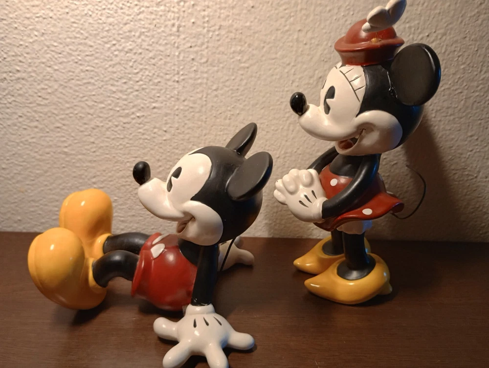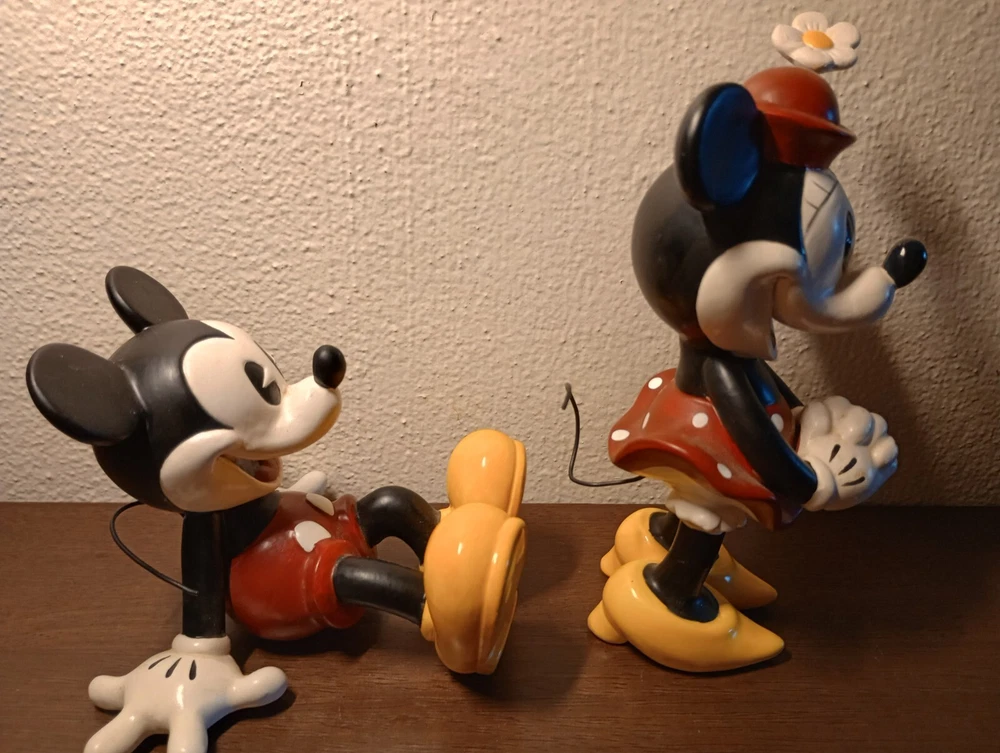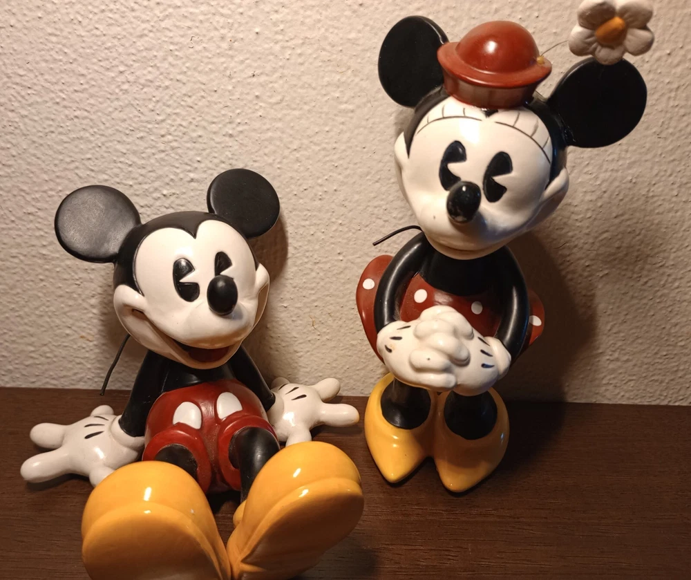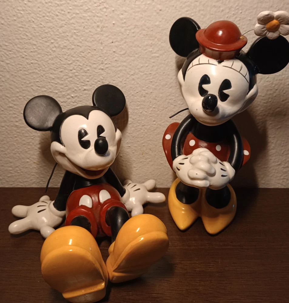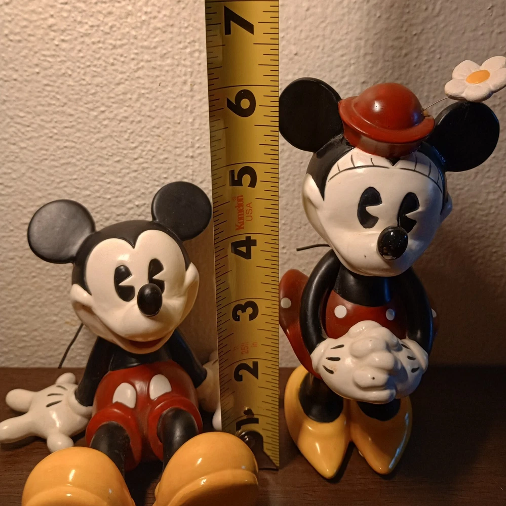 Very cute Mickey and Minnie Mouse pair pie- eyed to give them the vintage look please see photos for condition and measurements** Minnie has a flaw on her glove