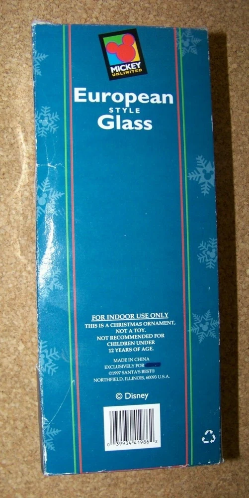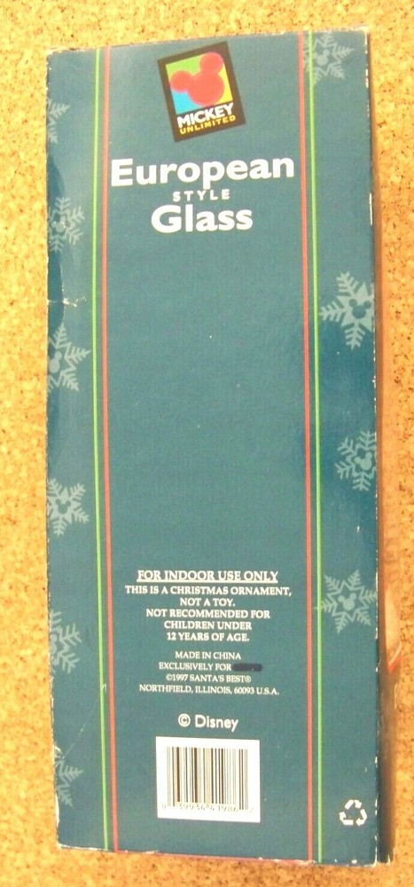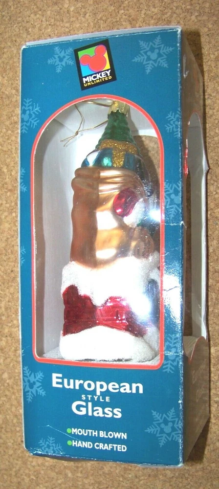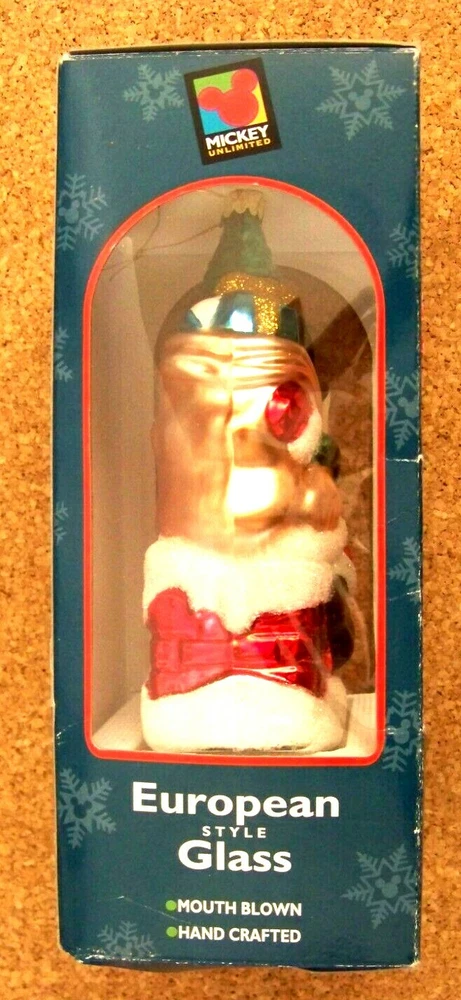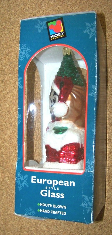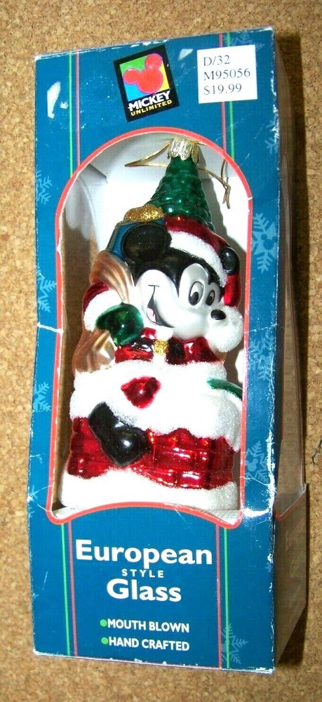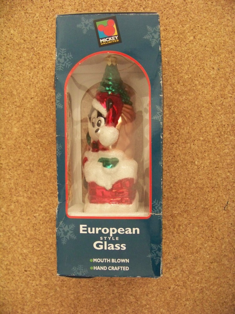 Mickey Mouse Hand-crafted European Style glass, mouth blown, hand crafted, Christmas ornament This ornament measures about 6.75" tall, 3" wide, 2.25" deep. Ornament is in excellent condition, if used, then lightly. No chips, cracks or major problems. Box is worn especially on the edges, with small creases, tears and bends. Seems to be missing the front plasticine window, assuming there should be one. Some label residue on the front in the top area. Don’t forget to click on my "Stores" link, next to my eBay name, to see other items I currently have listed for sale, or you can copy and paste this address into your browser: stores.ebay.com/highcountrycollectibles SHIPPING INFORMATION Shipping to U.S. addresses is FREE! HIGH COUNTRY COLLECTIBLES Since 1989 – A LEADER IN THE DENVER SPORTS MEMORABILIA MARKET. Check out my other auctions and listings, and keep an eye out for the different, unusual, and EXCLUSIVE items available nowhere else but from High Country Collectibles.