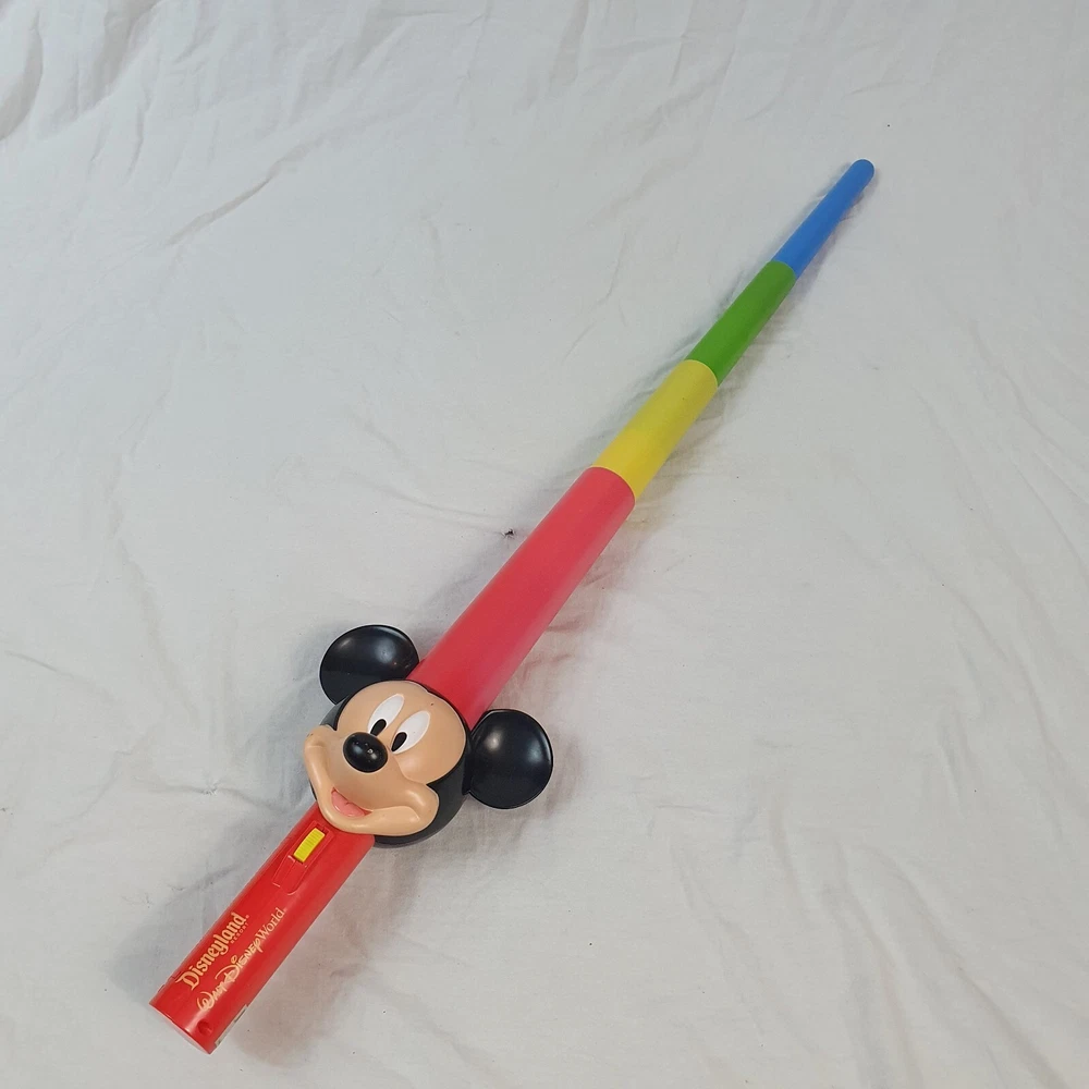 The Mickey Mouse Lightsaber Sword is a unique collectable item inspired by Walt Disney World's DisneyLand Resort. Featuring the beloved character Mickey Mouse, this lightsaber toy is perfect for fans of Disney and collectors alike. With its distinctive rainbow design, this contemporary piece is sure to bring a touch of magic to any Disneyana collection. Made by Disney, this lightsaber sword is a must-have for any Disney enthusiast looking to add a touch of whimsy to their collection.