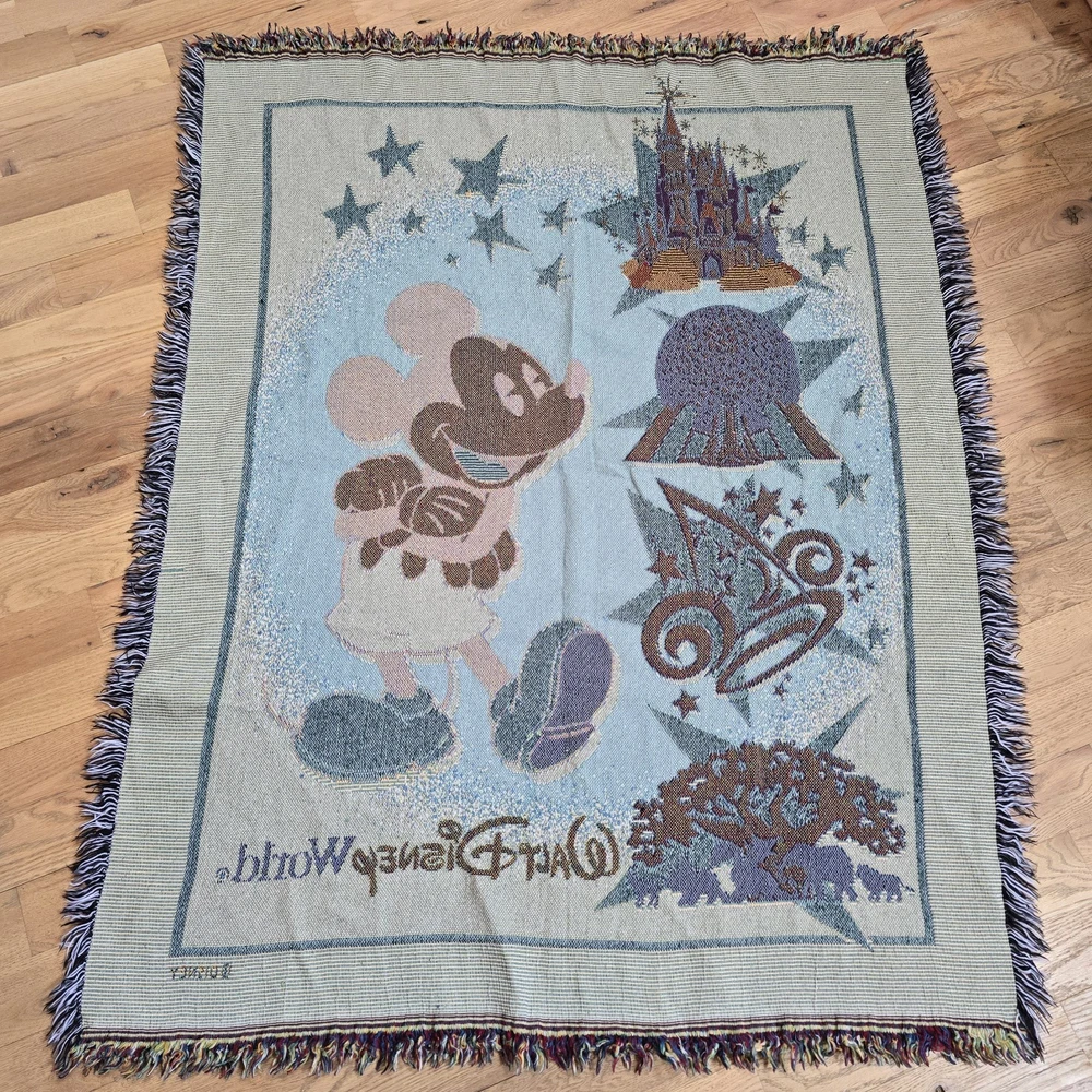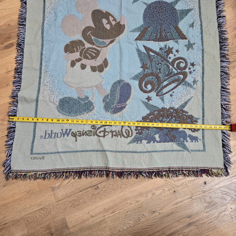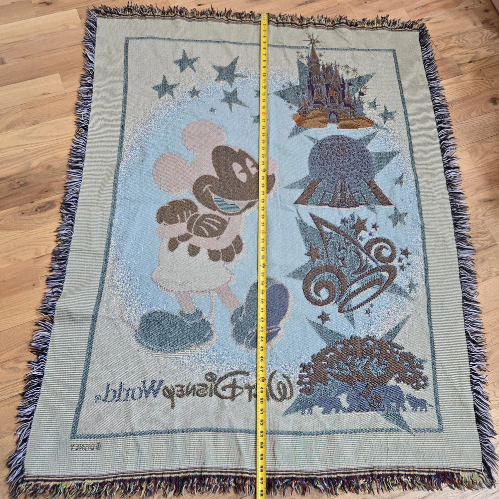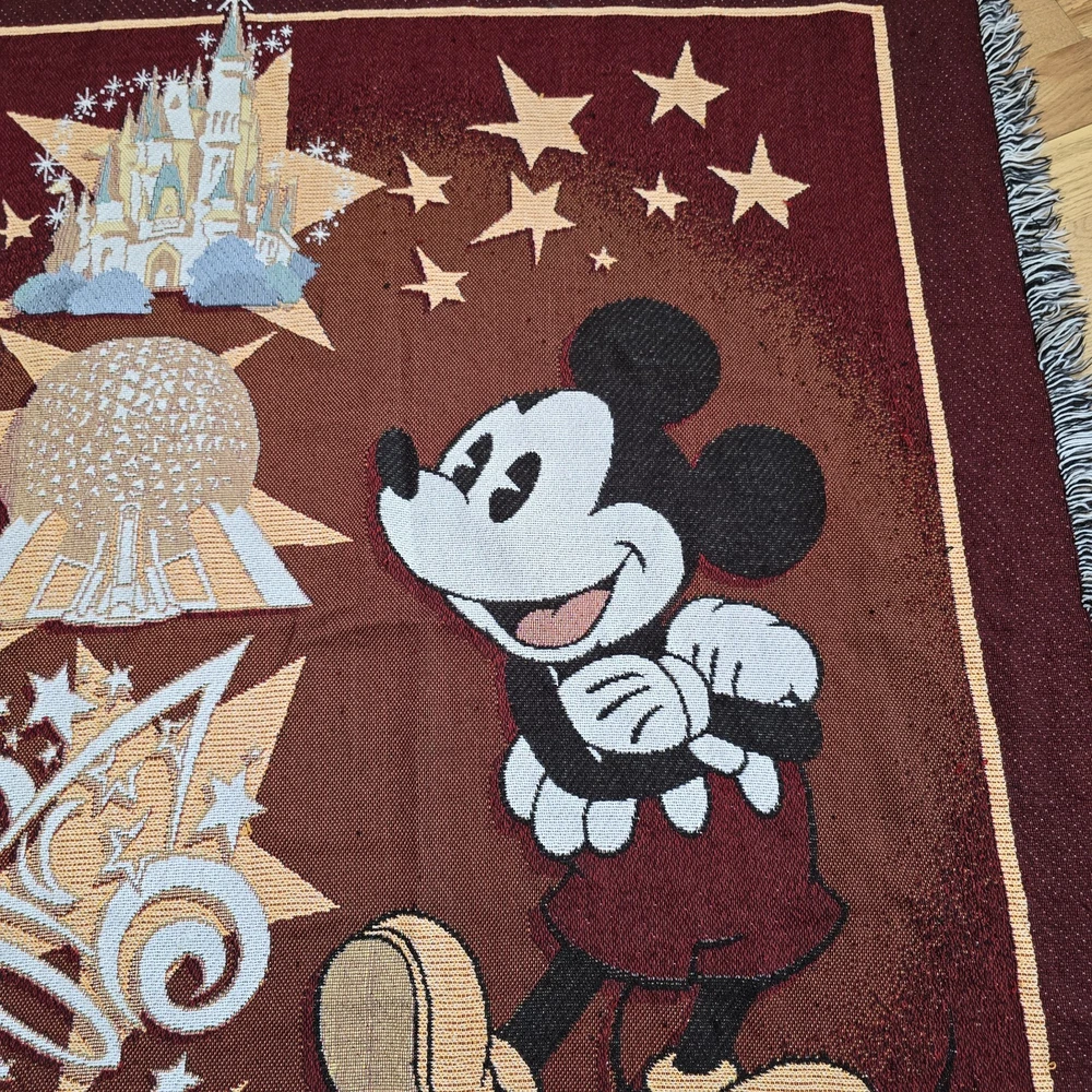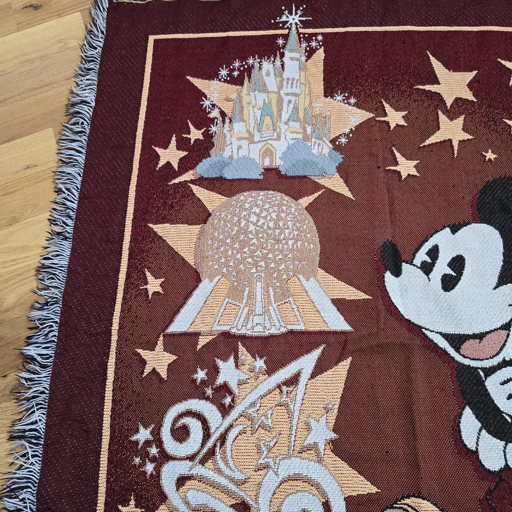 Wrap yourself up in the magic of Disney with this Mickey Mouse Tapestry Throw Blanket. Featuring the iconic character Mickey Mouse, this woven throw blanket is a must-have for any Disney fan. With vibrant multi-colors, this rectangular blanket measures 55 inches in length and 45.5 inches in width, making it the perfect size for a cozy night in. Whether you're looking to add a touch of Disney to your bedroom or living room, this blanket is perfect for all ages and genders. Show off your love for Walt Disney World with this one-of-a-kind throw blanket, and cuddle up with your favorite Disney characters.