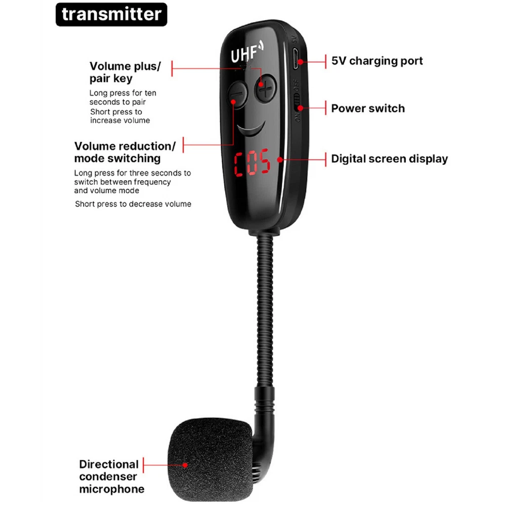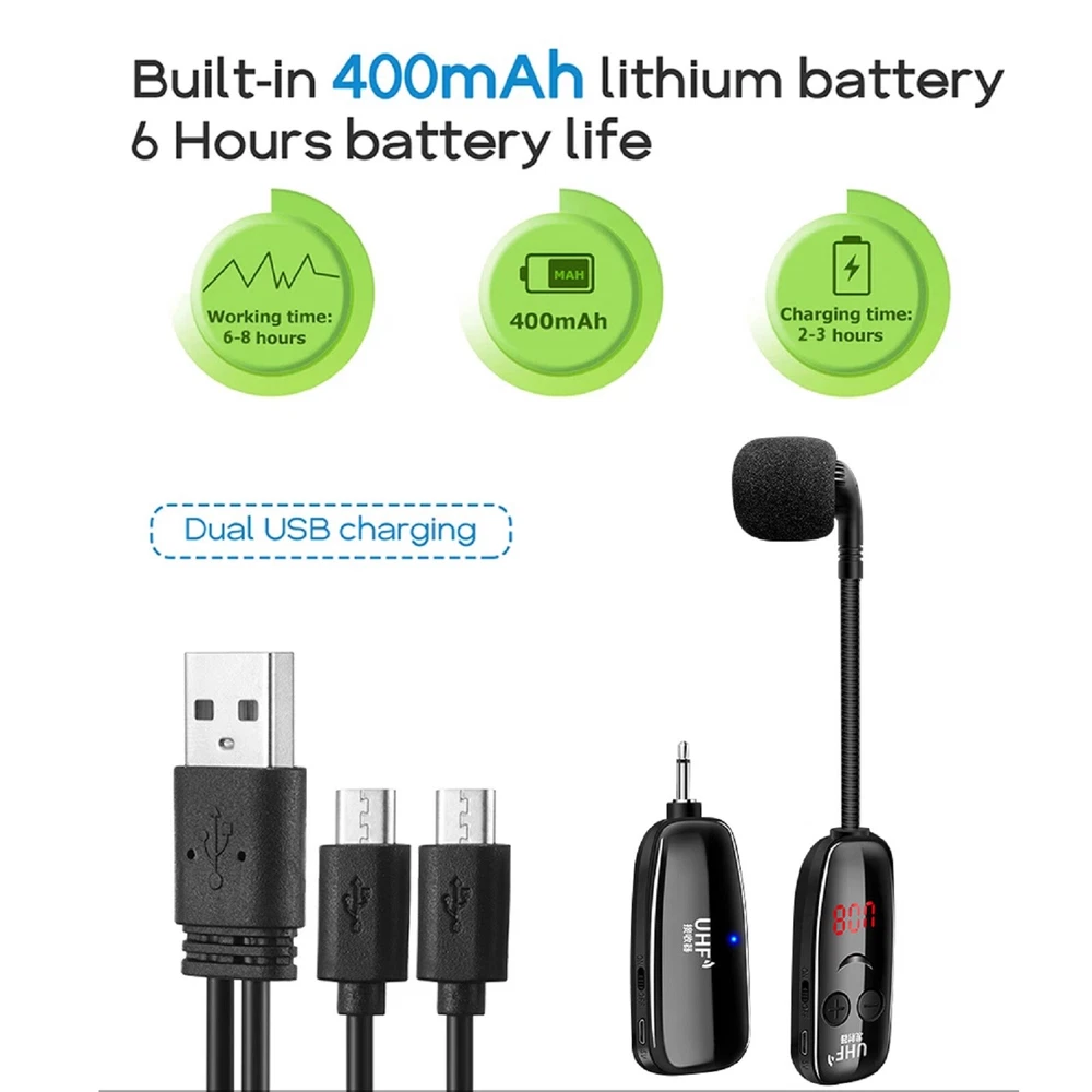 You may also like M.2 Key A+E 2.5G Gigabit Ethernet Network Lan Card RTL8125B RJ45 Chipset 17.99 USD 3.69 USD Round 8 Pin To RJ45 Microphone Adapter Cable for Yaesu FT450D FT897D FT991 FT891 13.88 USD 10/100/1000M Ethernet to Fiber Optic Media Converter 4 RJ45 & 1 SC fiber Port 39.99 USD New 250Pcs 7 Size Non Insulated Wire Ferrules Kit Red Copper Crimp Connector 13.69 USD PCIE FireWire Card PCI-e X1 to External IEEE 1394 Adapter Controller 4 Port 19.99 USD For NVMe SSD Converter Expansion Card SFF-8639 PH46 PCIE X4 Expansion Adapter 20.69 USD Product Description Microphone Saxophone For Trumpet Saxophone Instrument UHF Wireless Instrument Saxophone Microphone with Receiver Transmitter 50M Range Wireless Specifications: Color: Black Material: Plastic,Metal Use distance: Approx. 50 meters Frequency range: 550.5MHz-589.5MHz Frequency response: 30Hz-16000Hz Output impedance: ≤ 2.2KΩ Sensitivity: -45dB ± 2dB Power supply: DC5V Battery: Built-in 400mAh polymer battery Features: [UHF Wireless Microphone] Professional version of the wireless microphone for saxophone music, eliminates the key sound, and also uses UHF low-power wireless frequency conversion technology with high-quality sound quality. It is a professional-grade wireless microphone for saxophone music. Support 40 units at the same time, standby time is 5-6 hours, wireless distance is more than 50 meters [High-sensitivity Pickup Sound] Built-in highly sensitive condenser microphone,perfectly capture the soundtrack of the instrument,make the sound more clear and realistic. [LED Digital Screen] The wireless instrument microphone with LED Digital Screen that can see the Frequency/ Battery Power and Volume esaily;360-degree rotatable silicone shock-proof clip and strong steel collar clip make it easy to fix on instruments or collar. It can effectively filter the noise generated by the vibration of the instrument. [Wide Application] The wirelss mic compatible with voice amplifier, speaker system etc;A Package Contents 1* Wireless Transmitter 1* Receiver 1* Instruction Manual 1* One for two charging cable 1* Clip 1* 6.35mm adapter 1* Box Shipping Returns Contact Us Payment 1. Items sent from US warehouse. 2. Receiving time = Processing time + Shipping time. 3. Processing Time: Around 1-2 business Days. 4. Shipping Time: 3-5 business day. It may have a little delay during some holiday (such as Christmas), any problem, please feel free to contact. Always believe we can figure things out with communication, if it comes to return, the pacakge must be intact and the same as you receive. If you have any questions, please feel free to email our service specialists 24 Hours a Day, 7 Days a Week. We will reply you ASAP. Return/refund is accepted within 30 days after the buyer receives the item. NO exchange will be accepted after 30 days from the date when the item is received. Please contact us first before returning your product!!! If you have any questions, our Customer Service staffs welcome you to email us. We strive to answer all questions and resolve any problems as quickly as possible. We care about our valued customers, and will always try to help you. So if you have any problems, You can contact us 7*24, we will reply at the first time. We accept all verified payments from ebay. Orders will be shipped after receiving cleared payment. Shipping 1. Items sent from US warehouse. 2. Receiving time = Processing time + Shipping time. 3. Processing Time: Around 1-2 business Days. 4. Shipping Time: 3-5 business day. It may have a little delay during some holiday (such as Christmas), any problem, please feel free to contact. Returns Always believe we can figure things out with communication, if it comes to return, the pacakge must be intact and the same as you receive. If you have any questions, please feel free to email our service specialists 24 Hours a Day, 7 Days a Week. We will reply you ASAP. Return/refund is accepted within 30 days after the buyer receives the item. NO exchange will be accepted after 30 days from the date when the item is received. Please contact us first before returning your product!!! Contact Us If you have any questions, our Customer Service staffs welcome you to email us. We strive to answer all questions and resolve any problems as quickly as possible. We care about our valued customers, and will always try to help you. So if you have any problems, You can contact us 7*24, we will reply at the first time. Payment We accept all verified payments from ebay. Orders will be shipped after receiving cleared payment. Radio Headset Dust Cover for BAOFENG A58 UV-XR BF-9700 UV-9R UV9R Plus 4.99 USD 3.69 USD CLIP-14 Waist Back Clip for Yaesu VX-7R VX-6R VX177 FT-277R/270R Walkie Talkie 9.99 USD 3.69 USD 82PCS/Set Plastic Gear DIY Technology Set for Toy Motor Car Robot Model Kit 6.99 USD 3.69 USD Flexible Twist Mounting Rubber Base Bracket Accessories For for Baby Monitor 5.99 USD 3.69 USD 112Pcs Plastic Car Accessories Gears Motor Tires Kids Educational Toys DIY Kit r 13.99 USD 3.69 USD F Type Male to Dual Female Connector Dual Y Type 3 Way F Jack Splitter RG316 4.99 USD 3.69 USD Full Metal Micro 7-type N20 Metal Gear Motor DC 3V-6V 5V 1170RPM Threaded Screw 5.99 USD 3.69 USD USB 9-Pin Extension Cable 1 to 4 Desktop Motherboard Splitter Adapter Hub c 9.99 USD 3.69 USD 1000Mbps Ethernet Splitter RJ45 Cable LAN Network 1 IN 4 Out Extension Hub 19.99 USD 3.69 USD Portable 250mW 10kHz-30MHz Passive Magnetic Loop Antenna For HF & VHF Kits 27.99 USD 3.69 USD New 7+15 Pin SATA SSD HDD Female to 2.5" 44Pin IDE Male Adapter Accessories 7.99 USD 3.69 USD 12+6 Pin SSD to SATA Converter Adapter Card For Macbook Air 2010 2011 Macbook e 7.99 USD 3.69 USD Flat Idler Pulley Replace Part For Craftsman/Husqvarna/Poulan/Weed Eater/Roper 20.99 USD 3.69 USD 39" USB Charger Charging Cable Cradle Stand for TEC TEC TEC ULT-G GOLF GPS Watch 10.99 USD 3.69 USD PCI-E Express To USB 3.0 Expansion Card Adapter 7 Ports Hub External Controller 15.99 USD 3.