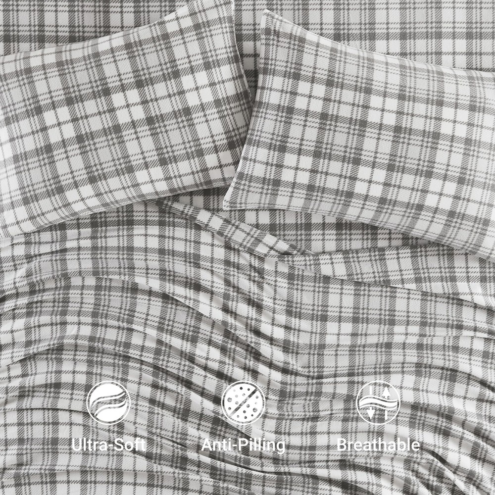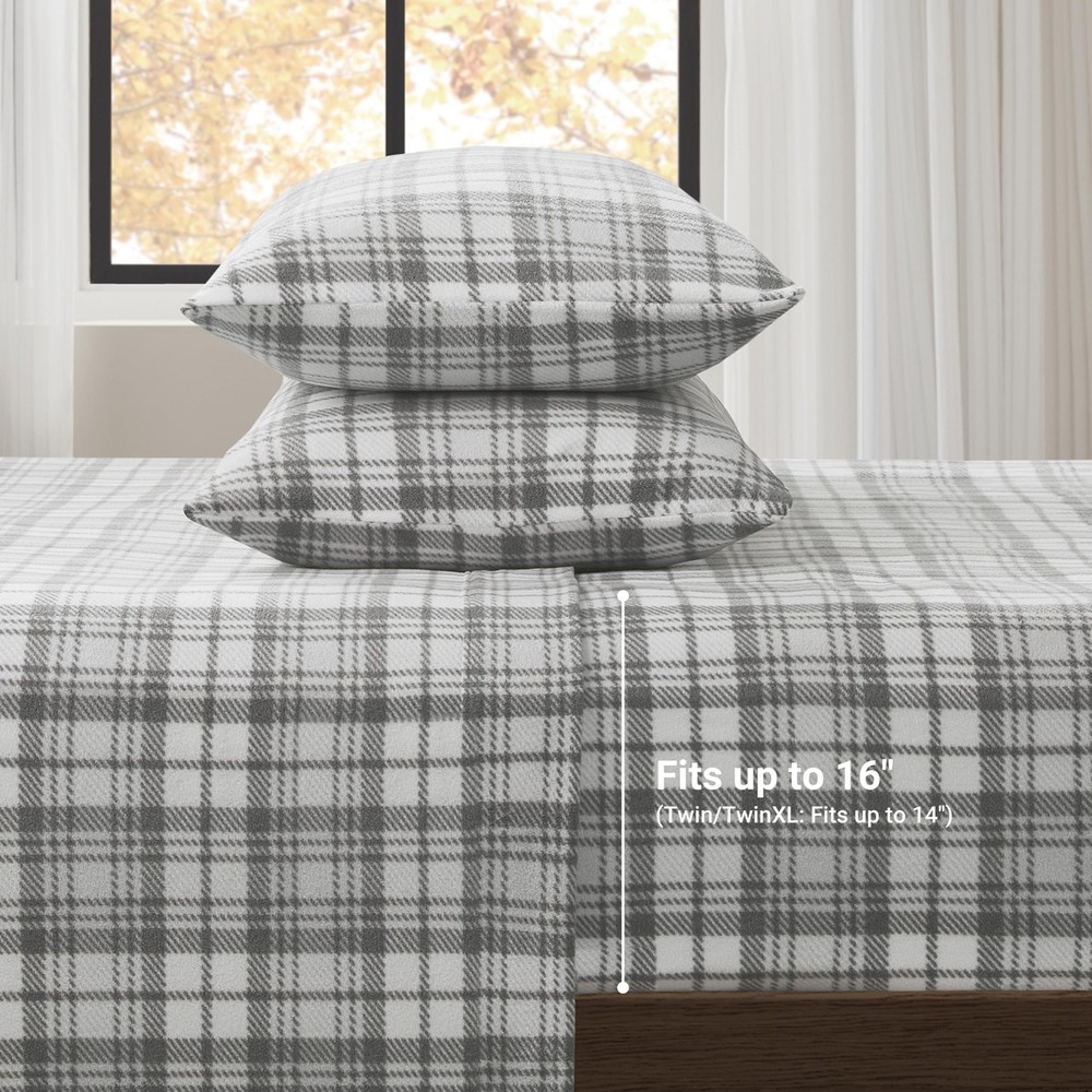 A luxurious alternative to flannel, this Micro Fleece Sheet Set turns your bed into a cozy getaway. Featuring a variety of prints and solids these sheets are ultra-soft and perfect for staying warm and comfortable through the night. Machine washable for easy care. Set includes: 1 Fitted Sheet, 1 Flat Sheet, and 2 Pillowcases (or 1 Pillowcase for Twin/TXL sizes). FEATURES - This is a cozy micro fleece sheet set which is a luxurious alternative to flannel and features a charming grey plaid print in soft and subtle hues to create an enjoyable look. Also provides warmth and a fun style for your bedroom Fleece - It is known for its softness, warmt and affordability. When it comes to extra warmth, fleece is the clear winner. It also use a GSM weight indicator rather than thread count to measure quality. It uses 160 GSM for more warmth and better quality FIT - With elastic all around, snugly with your mattress. Fits mattress up to 16 inches deep PACKAGE INCLUDES AND MEASUREMENT - 1 Flat Sheet: 66(W) inches x 96(L) inches, 1 Standard Pillowcase: 20(W) inch x 30(L) inch, 1 Fitted Sheet: 39(W) inches x75(L) inches+14 inches depth EASY CARE - Machine washable and dries quickly on tumble dry low. Do not bleach