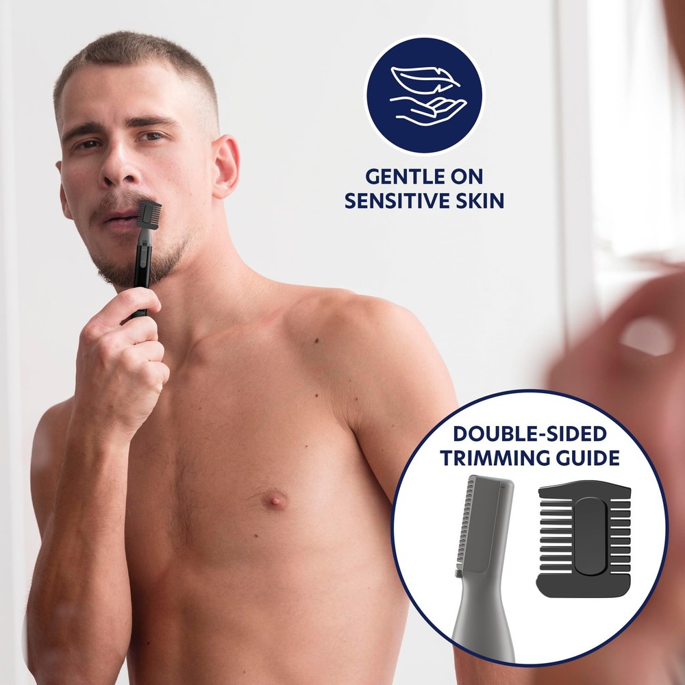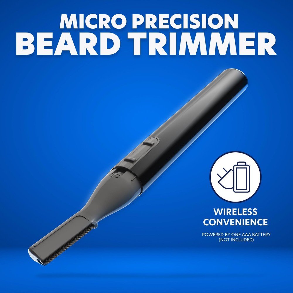 Groom Essentials Micro Precision Beard Trimmer for Men, Mustache Trimmer, Cordless, Brush, Protective Cap - Ergonomic Handle, Double-Sided Trimming Guide BATTERY OPERATION: This men's beard trimmer runs on a single AAA battery, eliminating cumbersome cables for effortless grooming; enjoy uninterrupted trimming sessions with a portable design that lets you move freely without distractions from cords ERGONOMIC DESIGN: Crafted with comfort in mind, this micro precision trimmer boasts a compact, easy-to-hold design that fits perfectly in your hand; ideal for extended grooming sessions, it reduces fatigue while delivering precise, clean trimming every time TWO-SIDED TRIMMING GUIDE: Featuring a dual-sided guide with one side longer than the other, this trimmer adapts to long, medium, or short hair; customize your trimming style effortlessly and achieve a perfectly tailored look that meets your personal grooming needs SMALL YET POWERFUL: Despite its compact size, this micro precision trimmer delivers robust performance with minimal effort; its efficient design makes it easy to store and perfect for on-the-go grooming, ensuring you’re always ready for a quick touch-up GENTLE ON THE SKIN: Engineered to minimize nicks and pulls, this precision trimmer offers smooth, effective grooming that enhances your look; achieve professional-quality results at home while keeping your skin comfortable and irritation-free throughout every use Shipping We offer FREE shipping on all orders! We ship within Three business days of payment, usually sooner. We use a selection of shipping services such as UPS, FedEx, USPS etc. We only ship to the lower 48 states, no APO/FPO addresses or PO Boxes allowed. Local pickups and combined shipping options are not provided at this time. Return You can return a product for up to 30 days from the date you purchased it. Any product you return must be in the same condition you received it and in the original packaging. Please keep the receipt. Payment We accept payment by any of the following methods: PayPal Please pay as soon as possible after winning an auction, as that will allow us to post your item to you sooner! Feedback Customer satisfaction is very important to us. If you have any problem with your order, please contact us and we will do our best to make you satisfied. Contact Us If you have any queries, please contact us via ebay. We usually respond within 24 hours on weekdays. Please visit our eBay store to check out other items for sale! Thank you for shopping at our store.