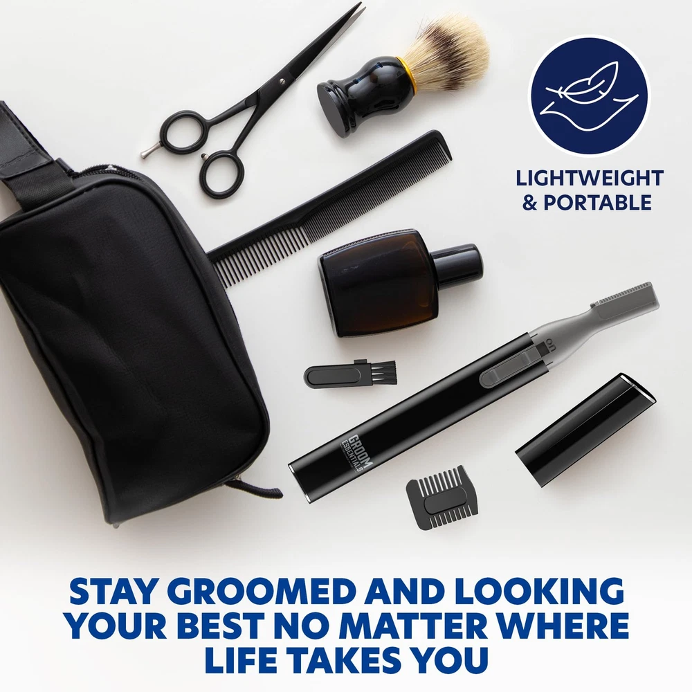 Groomsman Rechargeable Beard Trimmer Kit for Mustaches Nose Hair and Light Detail