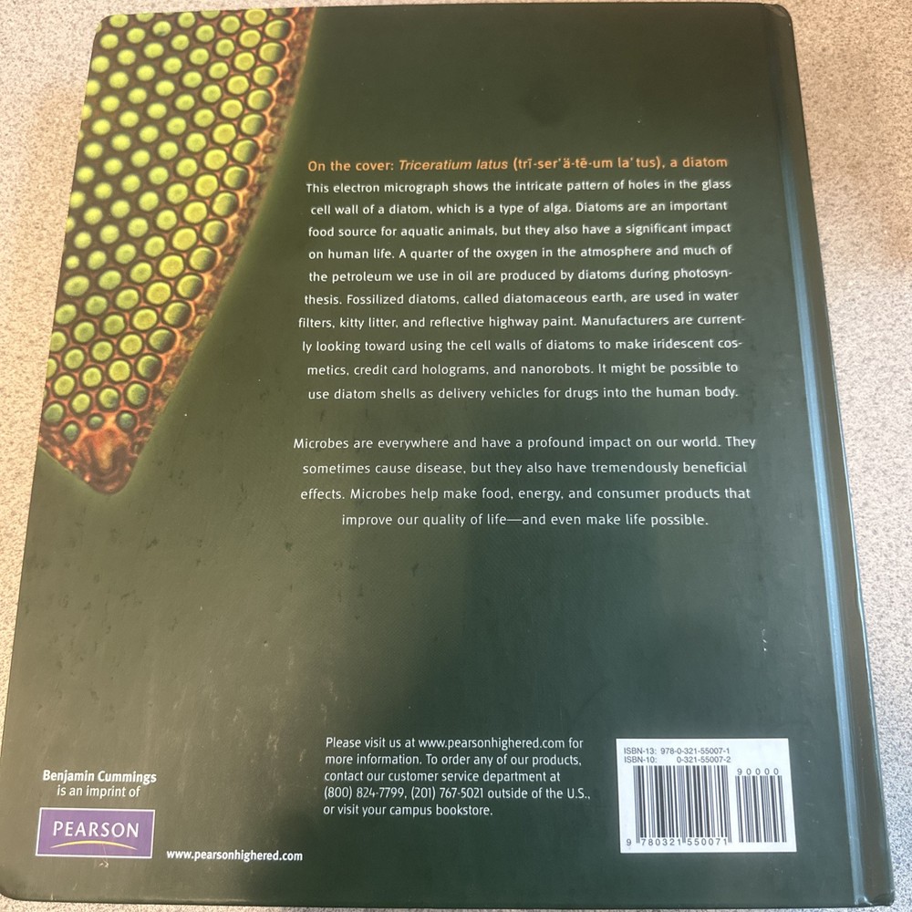 The product is a science textbook titled "Microbiology: An Introduction" by Berdell R. Funke, Christine L. Case, and Gerard J. Tortora, published by Benjamin-Cummings Publishing Company in 2008. It is a hardcover book written in English, with 960 pages covering topics in life sciences like microbiology and biology. The book measures 10.9 inches in length, 9.3 inches in width, and 0.6 inches in height, with an item weight of 82.5 ounces.