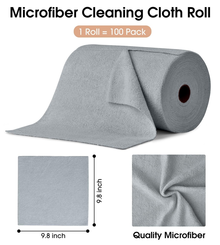 Microfiber Cleaning Cloth Roll is the ultimate solution for all your cleaning needs. Featuring a unique tear-away design, each roll contains 100 soft, lint-free, and scratch-free microfiber towels, making them perfect for a variety of surfaces, from kitchen counters to car interiors. Designed for superior durability, these towels can be reused hundreds of times, with no fraying or deterioration, ensuring long-lasting performance. The towels’ high absorbency and quick-drying nature make them ideal for everything from drying dishes to wiping down sensitive surfaces like your face or vehicle interiors. With no lint or streaks left behind, you'll enjoy spotless results every time. Whether you're cleaning at home, in the kitchen, or maintaining your car, these towels are gentle yet effective. And thanks to their thoughtful design, you can easily peel off a single towel whenever you need it, then roll it back up for reuse. With , you get the convenience, durability, and versatility you deserve. [Tear-Away Convenience & Easy to Use] microfiber towel rolls feature a unique tear-away design with 100 sheets per roll. Each towel can be easily peeled off one by one, allowing for hassle-free usage, without the bulkiness of traditional rolls. [Premium, Lint-Free & Scratch-Free] Made from high-quality microfiber fabric, these towels are soft, lint-free, and scratch-free, making them perfect for all surfaces, including sensitive ones. Use them confidently on countertops, dishes, and even delicate automobile interiors. [Long-Lasting] Each towel is designed to withstand hundreds of washes without fraying or losing its effectiveness. The towels maintain their strength and softness over time, making them a long-term, eco-friendly solution for your cleaning needs. [Versatile & Multi-Purpose] Ideal for a variety of tasks, these tear-away microfiber towels are perfect for cleaning dishes, wiping surfaces, drying your face, or detailing your car. They are perfect for home, kitchen, bathroom, and vehicle use. [Quick-Drying & Streak-Free] Engineered for fast absorption and drying, these towels leave no streaks or lint behind. Whether you’re drying dishes or wiping down surfaces, you’ll enjoy a clean, streak-free result every time.